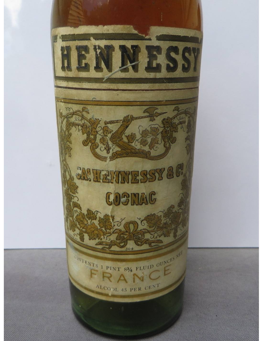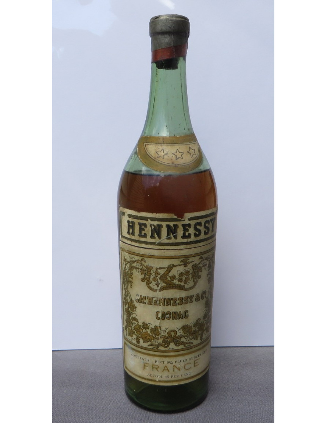 - (3 stars) Hennessy JAs. HENNESSY & Co. REGISTERED AT 304 STATIONERS HALL CONTENTS 1 PINT 8 3/4 FLUID OUNCES NET FRANCE ALCOOL 45 PER CENT