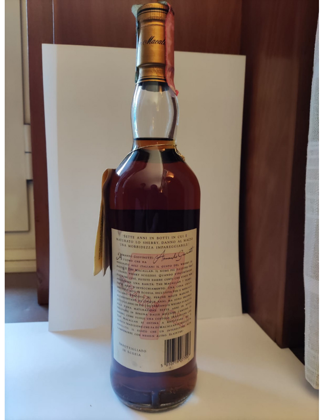 - Tha Macallan Seven yeard old Single Highland Malt Scotch Whisky (Agenti esclusivi per l'Italia Giovanetti & figli Milano)