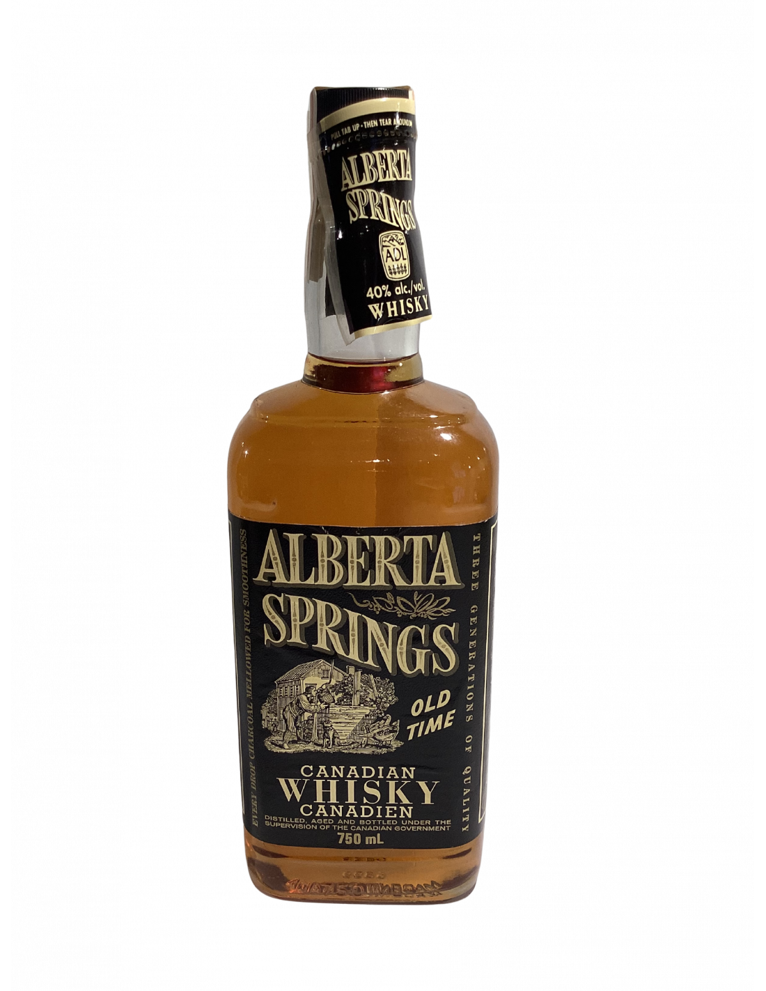 A remarkable expression of vintage Canadian whisky, this Alberta Springs Old Time Sipping Whisky represents a piece of distilling history. Produced by the renowned Alberta Distillers Limited, this bottle contains whisky distilled no later than 1979 and aged for a decade, making it a genuine artifact from a distinct era in North American spirits. Embodying "Three Generations of Quality," this release is a testament to the distillery's long-standing heritage and commitment to craftsmanship.