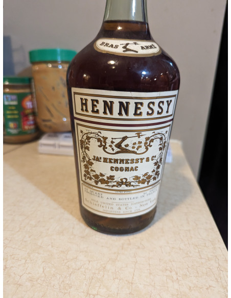 - Bras Armé Hennessy Ja Hennessy & Co Cognac 4/5 Quart 80 proof Produced and bottled in France Sole united state distributors Schieffelin & Co- New York Importers since 1794