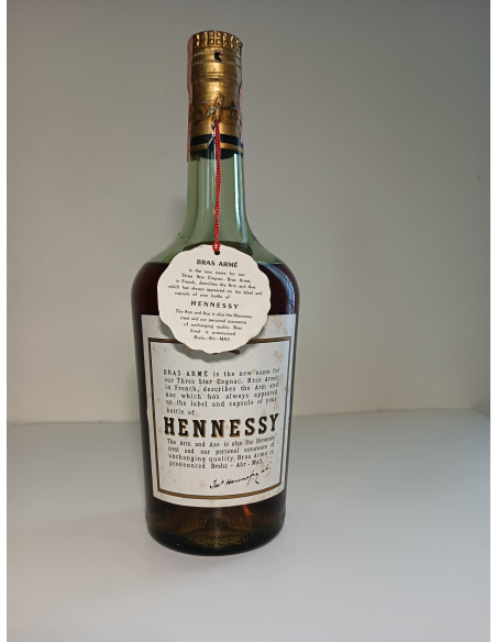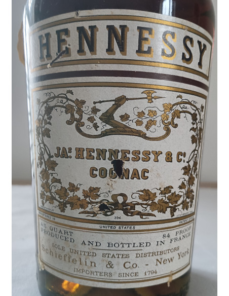 - Bras Arme .Hennessy. JAs. Hennessy & Co. 4/5 Quart. 84 Proof . Produced and Bottled in France. Sole United States Distributors. Schieffelin & Co. -New York Imported since 1794