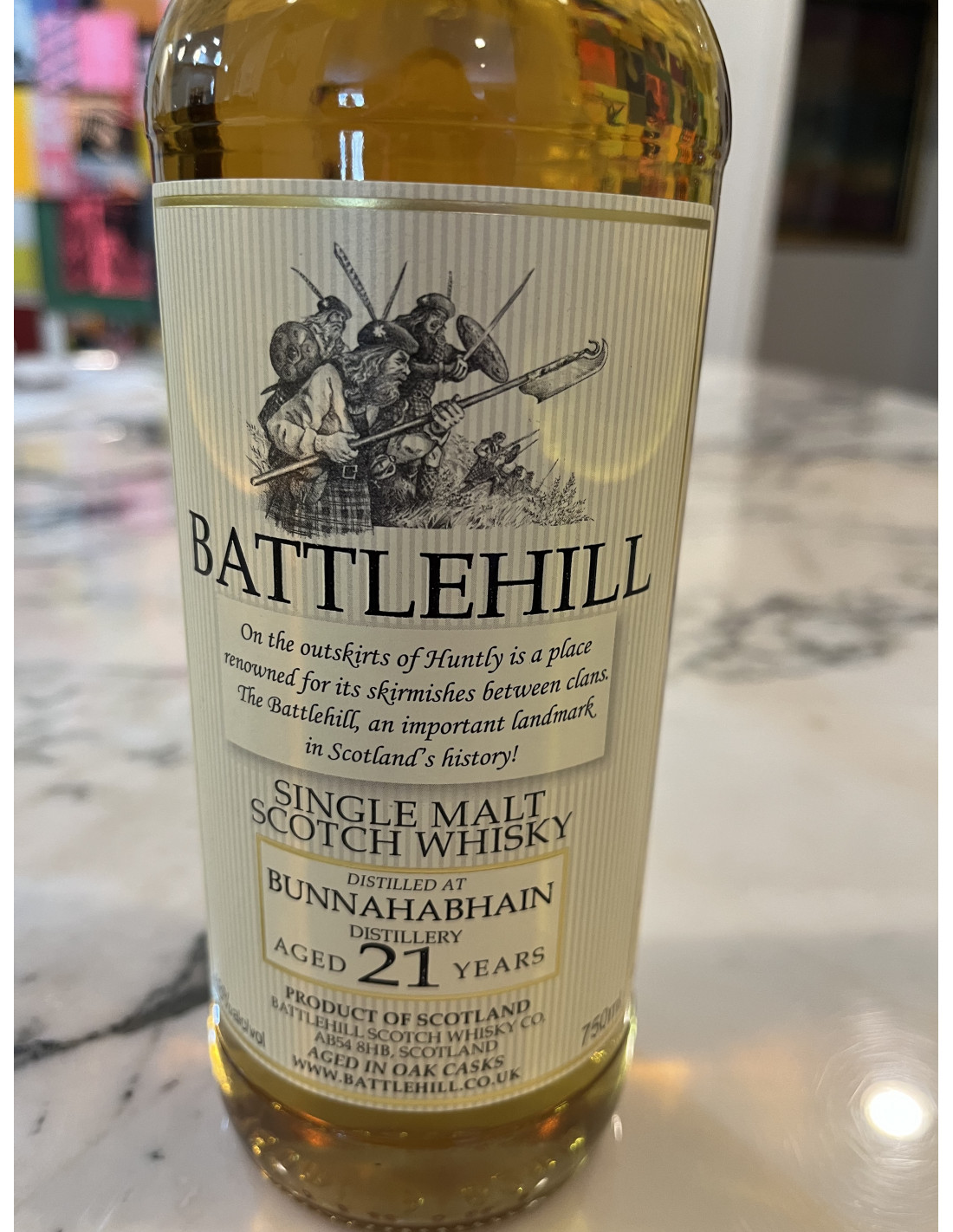 - On the outskirts of Huntly is a place renowned for its skirmishes between clans. The Battlehill, an important landmark in Scotland’s history. Distilled at Bunnahabhain Distillery Aged in Oak Casks