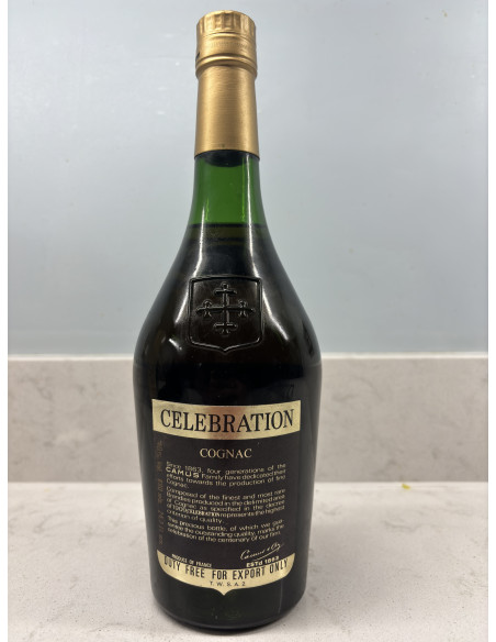 - On the front - Celebration Cognac, Camus, La grande marque Cognac. On the back - 690 mls. Vol. 40% 24,3 Fl. 0zs CELEBRATION COGNAC Since 1863. four generations of the CAMUS Family have dedicated their efforts towards the production of fine ...