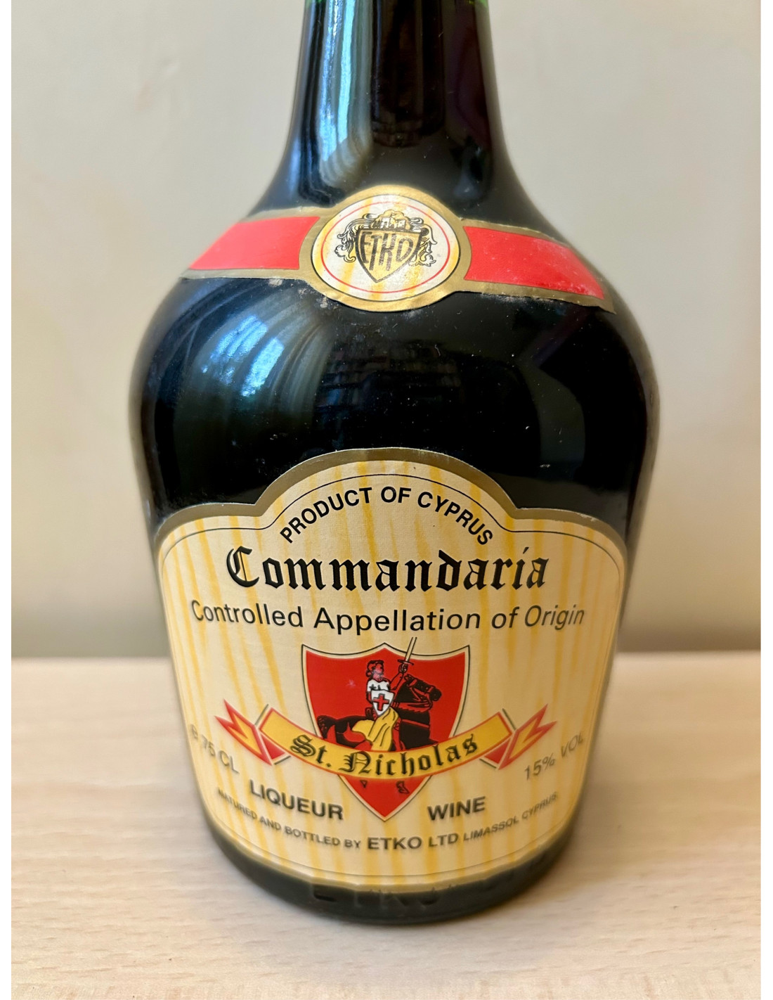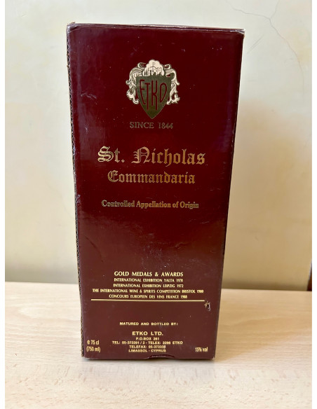 - product of cyprus - Commandaria St. Nicholas - controlled appellation of origin - liqueur wine - mature and bottled by Etko LTD Limassol Cyprus - 75cl 15% vol