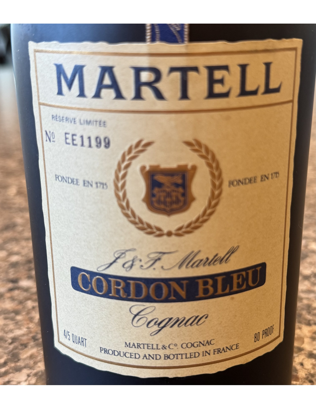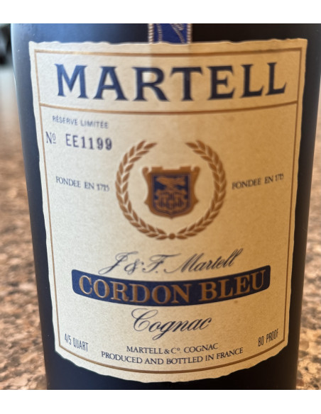 - Martel, Cordon Bleu cognac, 4/5 quart, 80 proof