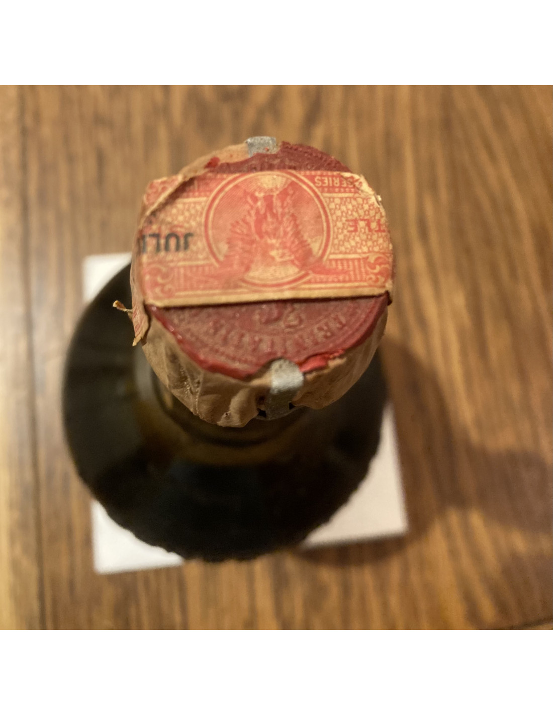 The presentation is complete with the traditional cork stopper, sealed to preserve the complex contents within. The intricate labeling and the overall condition of the bottle speak to its journey through the decades, offering a tangible connection to the past.