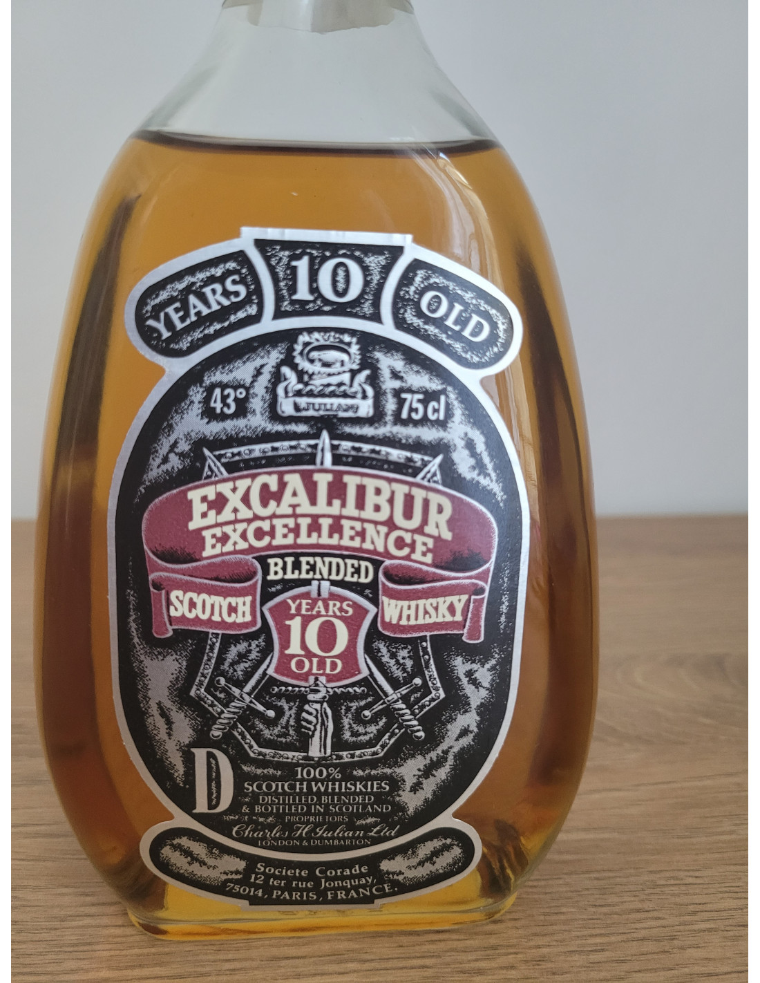 - Excalibur Excellence BLENDED 10 years old 100% scotch whiskies Charles H Julian LTD