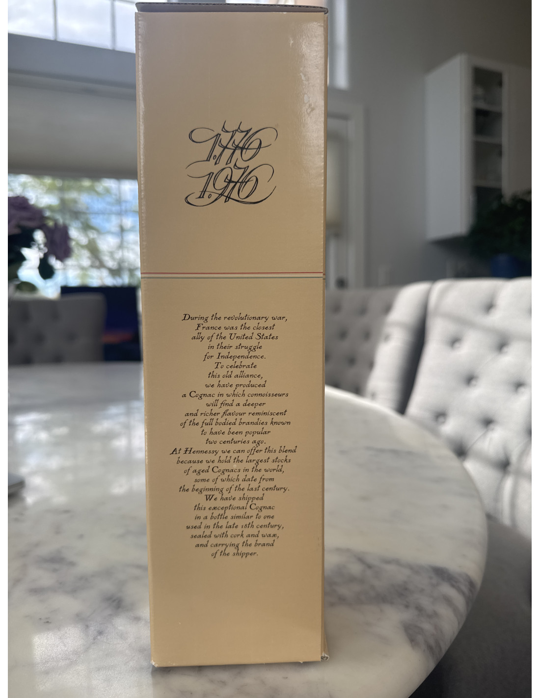 Box Side: Displays "1776 1976" in a decorative, almost calligraphic block style. The descriptive text ("During the revolutionary war...") is in a fine serif font.