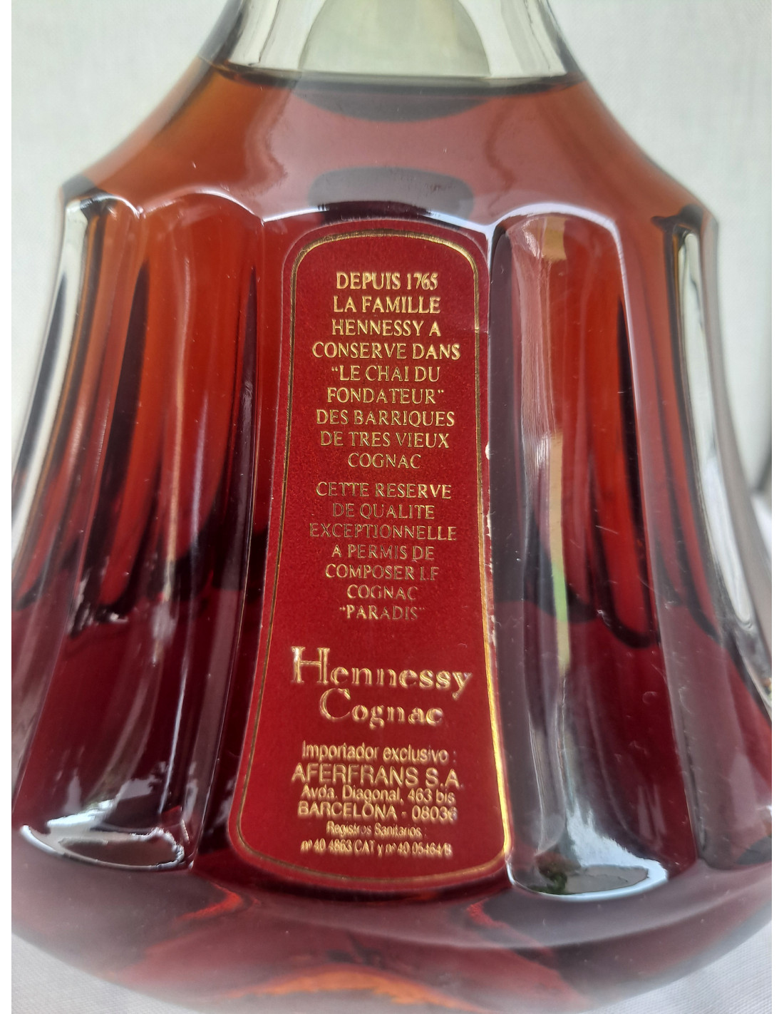 - Paradis Product of France Cognac France Hennessy 40% vol e 0.70 L Hennessy Cognac France Back Label (Red): DEPUIS 1765 LA FAMILLE HENNESSY A CONSERVE DANS "LE CHAI DU FONDATEUR" DES BARRIQUES DE TRES VI...