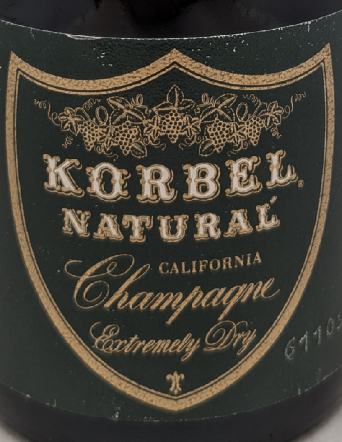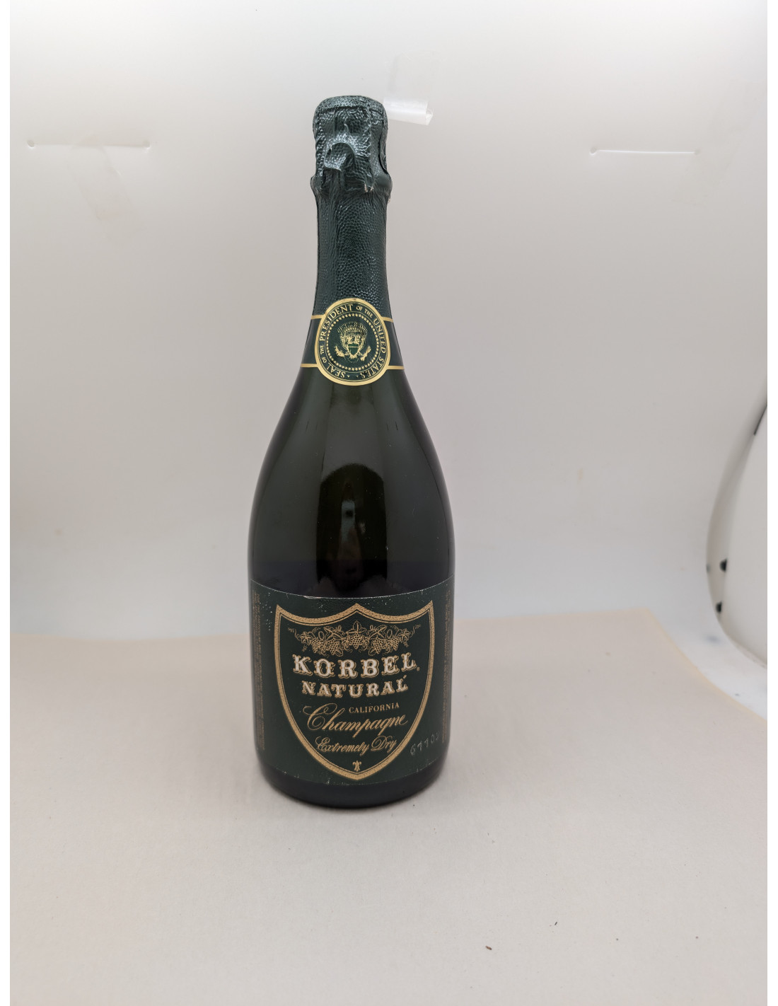 - neck label: Seal of the President of the United States, with Presidential seal. Main label: Korbel Natural California Champagne Extremely Dry, wit the numbers 611926 pressed into label Back label: Korbel Natural. This select champagne, prod...
