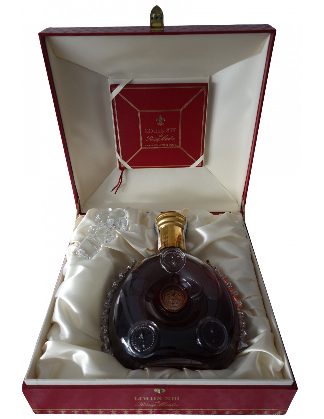 - Am Hals: Louis XIII Remy Martin Grande Champagne Cognac Auf der runden Flasche: 70cle 40% vol. Produce of France Auf den Boden: Remy Martin Baccarat CM 7411 Cognac 070 l France