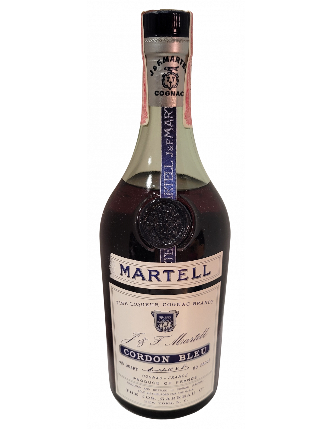 - MARTELL FINE LIQUEUR COGNAC BRANDY J. & F. Martell CORDON BLEU 4/5 QUART 80 PROOF COGNAC - FRANCE PRODUCE OF FRANCE PRODUCED AND BOTTLED IN COGNAC (FRANCE) SOLE DISTRIBUTORS FOR THE U. S. A. THE JOS. GARN...