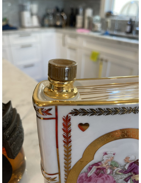 - cognac camus napoleon, production limitee, reservee a camus-cognac, serie No B 6624; it is in a bottle that looks like a book with a painting of a man and woman on it.