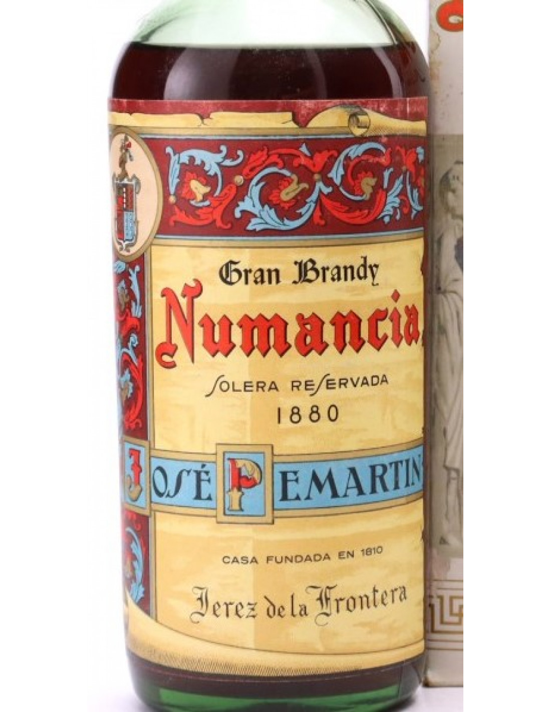 - Gran Brandy Numanica Solera ReServeda 1880 Rose Permartis (?, not sure about last word) Casa Fundada EN 1810 Jerez dela Frontera