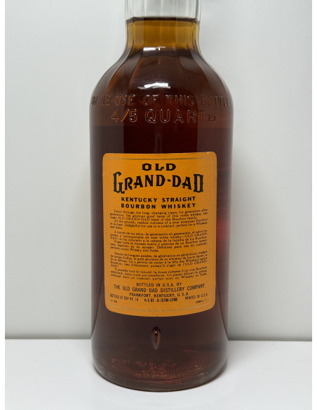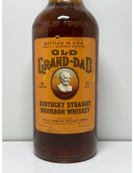 - Bottled in U.S.A. under U.S. Government Regulations Registered U.S. PAT. OFF. 86 Proof 43° G.L. Head of the Bourbon Family Kentucky Straight Bourbon Whisky Distilled by The Old Grand-Dad Distillery Company Frankfort, Kentucky, U.S.A. DSP K...