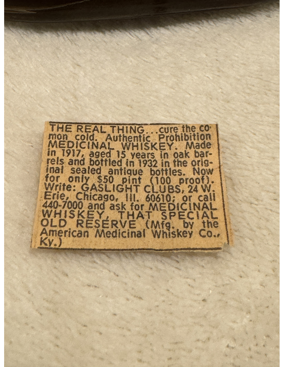 - Inhereted from my great uncle. I do not know how he acquired it but he was a WWII vet. He kept the bottle in a plastic bag to preserve the label.