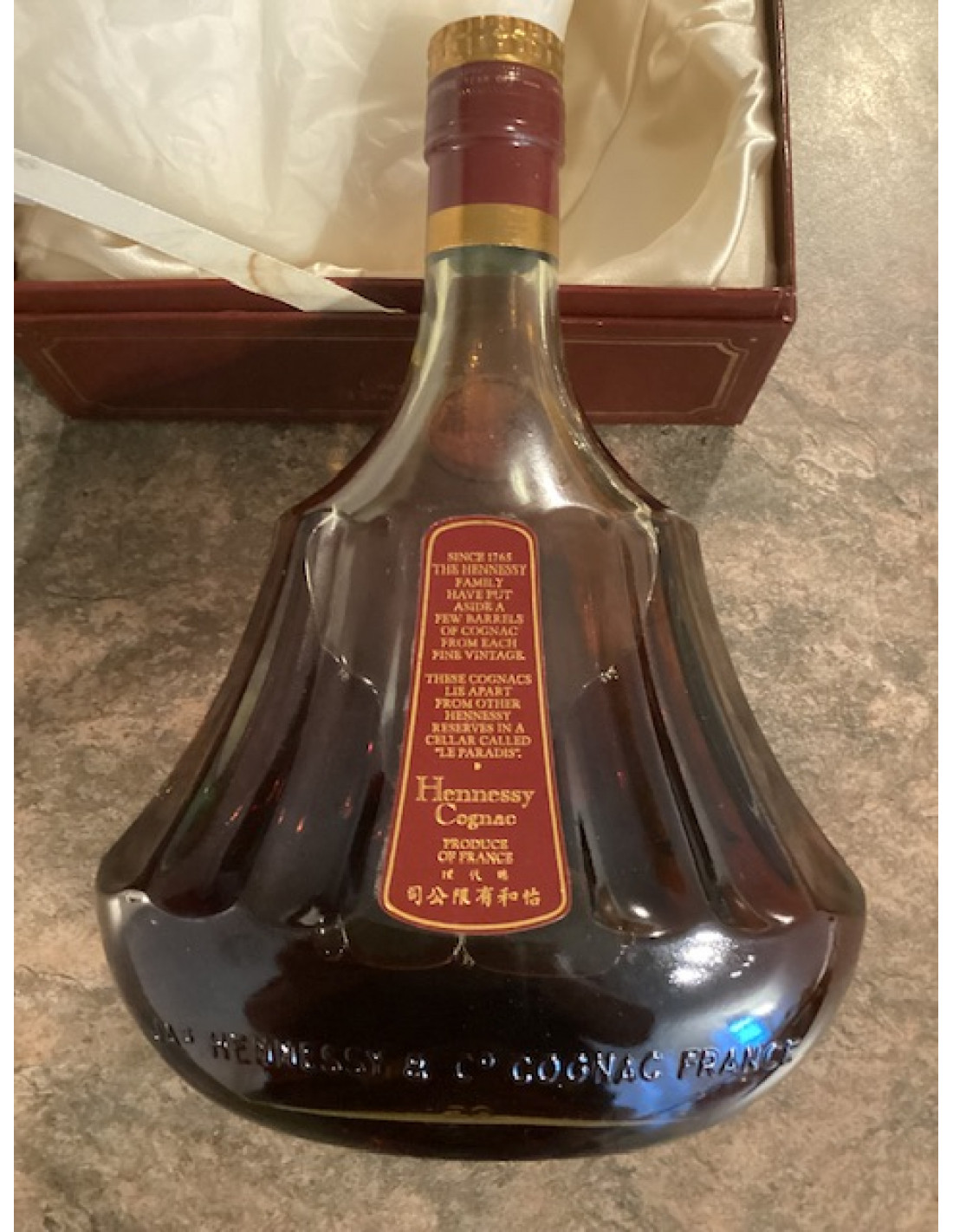 - Hennessy Paradis Extra , a stamp chopped on top of the label, the name of the Hong Kong import agent.
