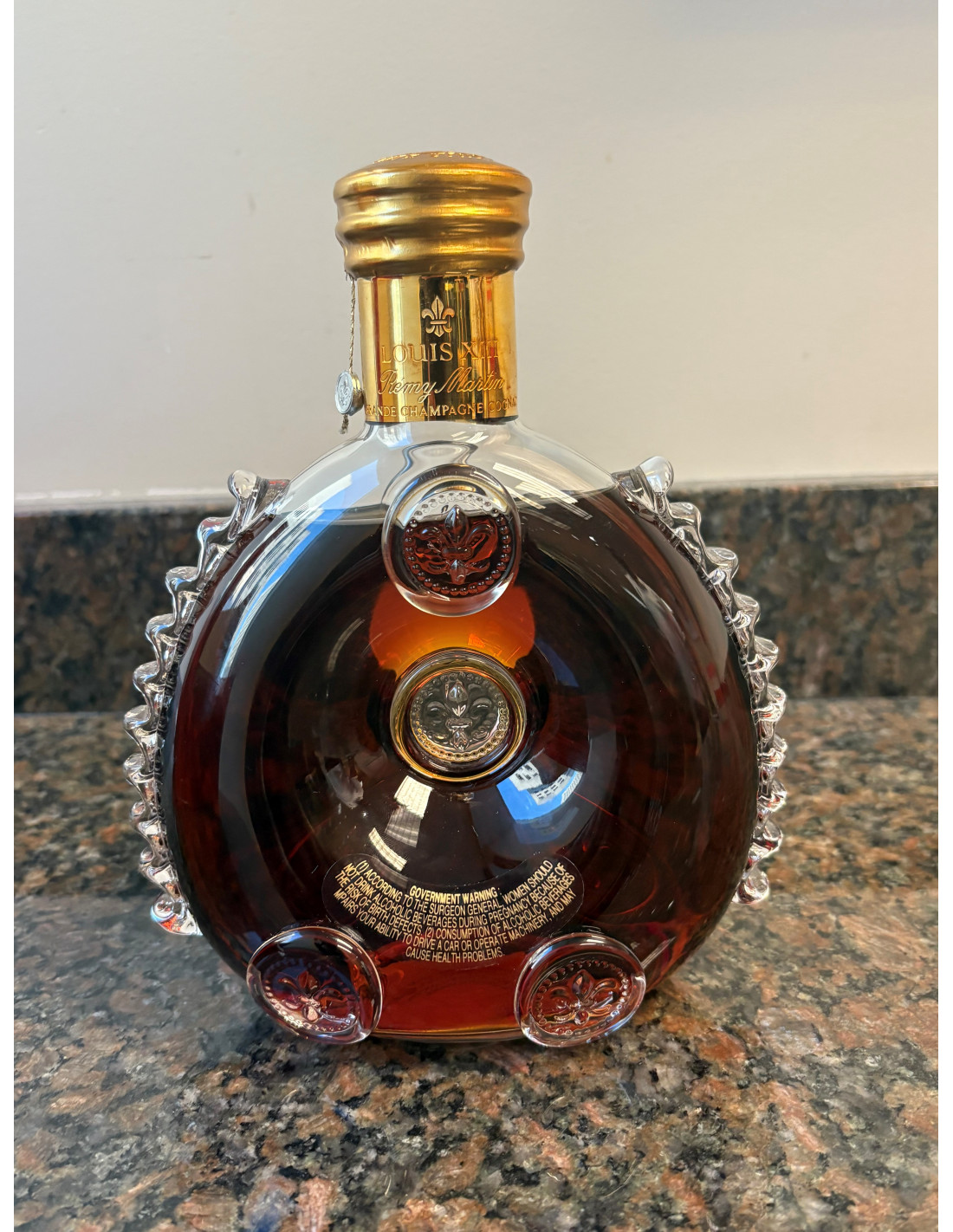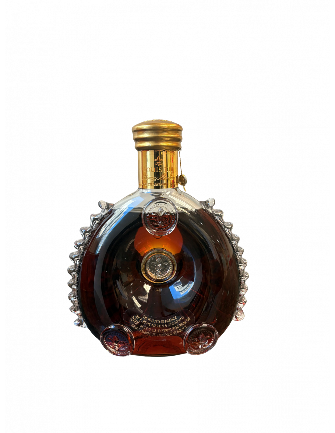 - Fleur-de-lis symbol LOUIS XIII de Rémy Martin GRANDE CHAMPAGNE Lower Clear Label (Front/Back): 750ml PRODUCED IN FRANCE BY E. REMY MARTIN & C° COGNAC SOLÉ U.S.A. DISTRIBUTOR 40% alc./vol. REMY ...