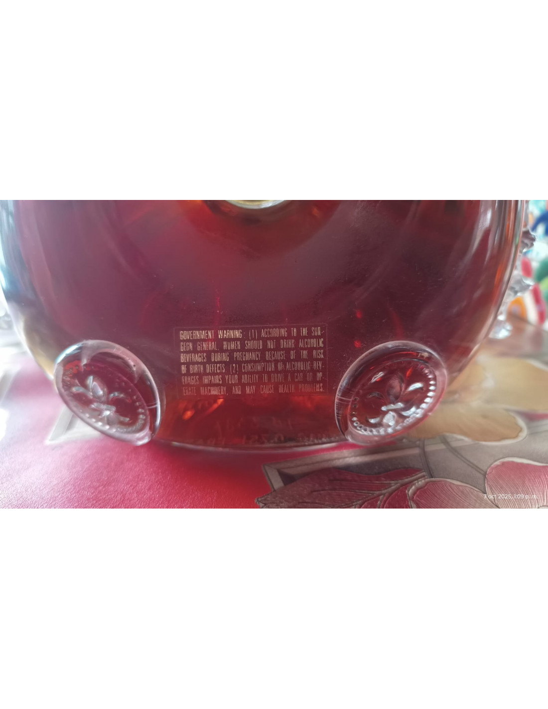 This particular bottling was produced for the discerning American market, a detail confirmed by the information elegantly etched into the glass. The presence of the U.S. government warning, mandated since late 1989, helps to place this decanter in a specific era of production, making it a distinct and verifiable piece for any serious collection. It is a rare opportunity to acquire a perfectly preserved artifact that embodies the history, artistry, and timeless excellence of the House of Rémy Martin.
