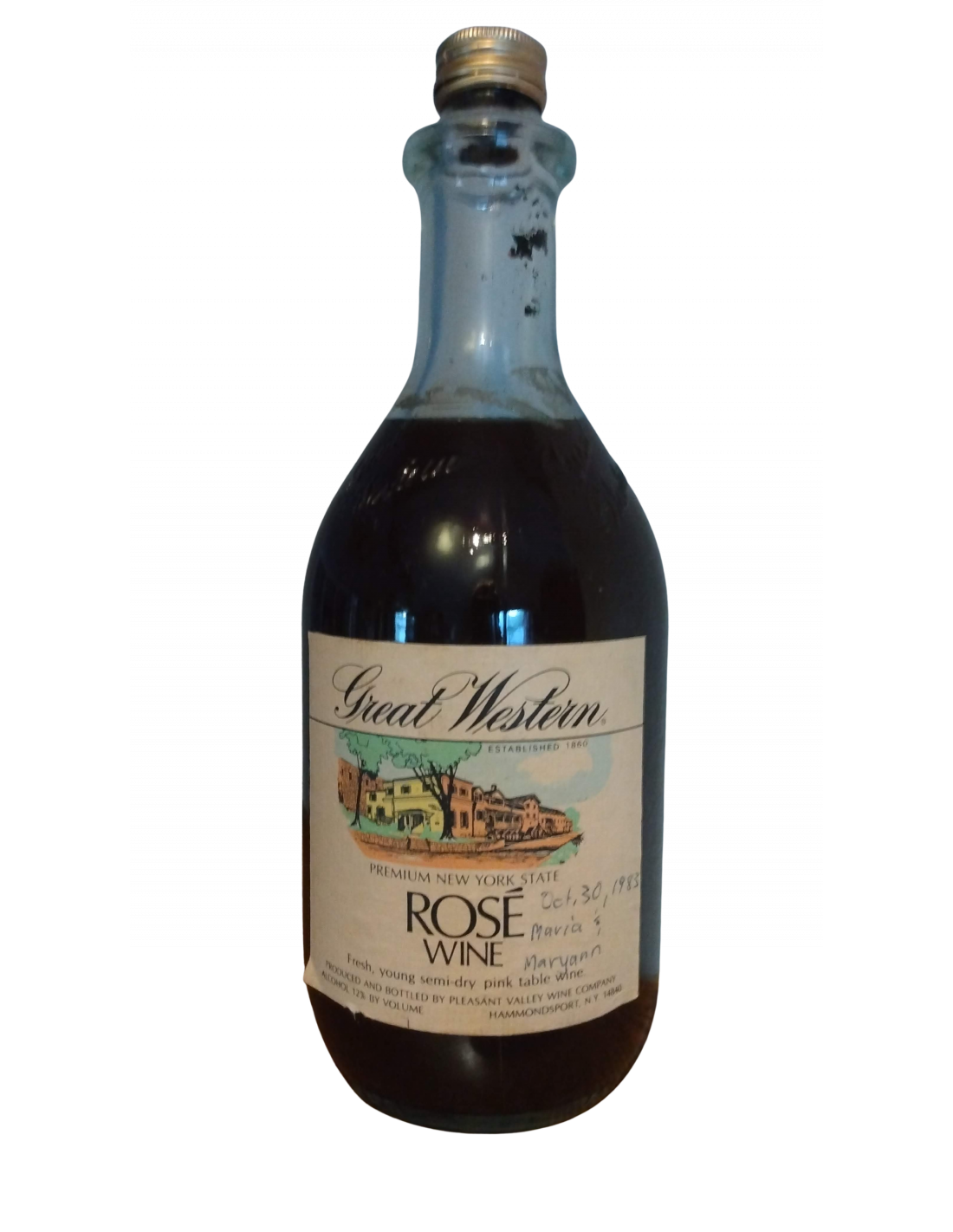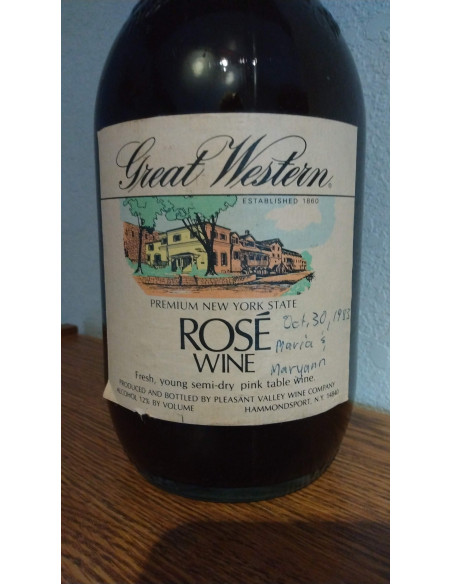 - Front label: Great Western Established 1860 Premium New York State Rose Wine Fresh, young semi-dry pink table wine Produced and bottled by Pleasant Valley Wine Company Alcohol 12% by volume Hammondsport, N.Y. 14840 There is a handwritten no...