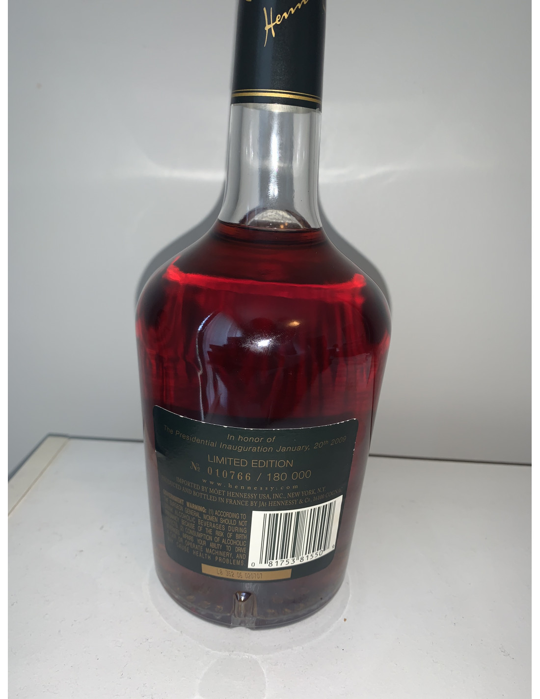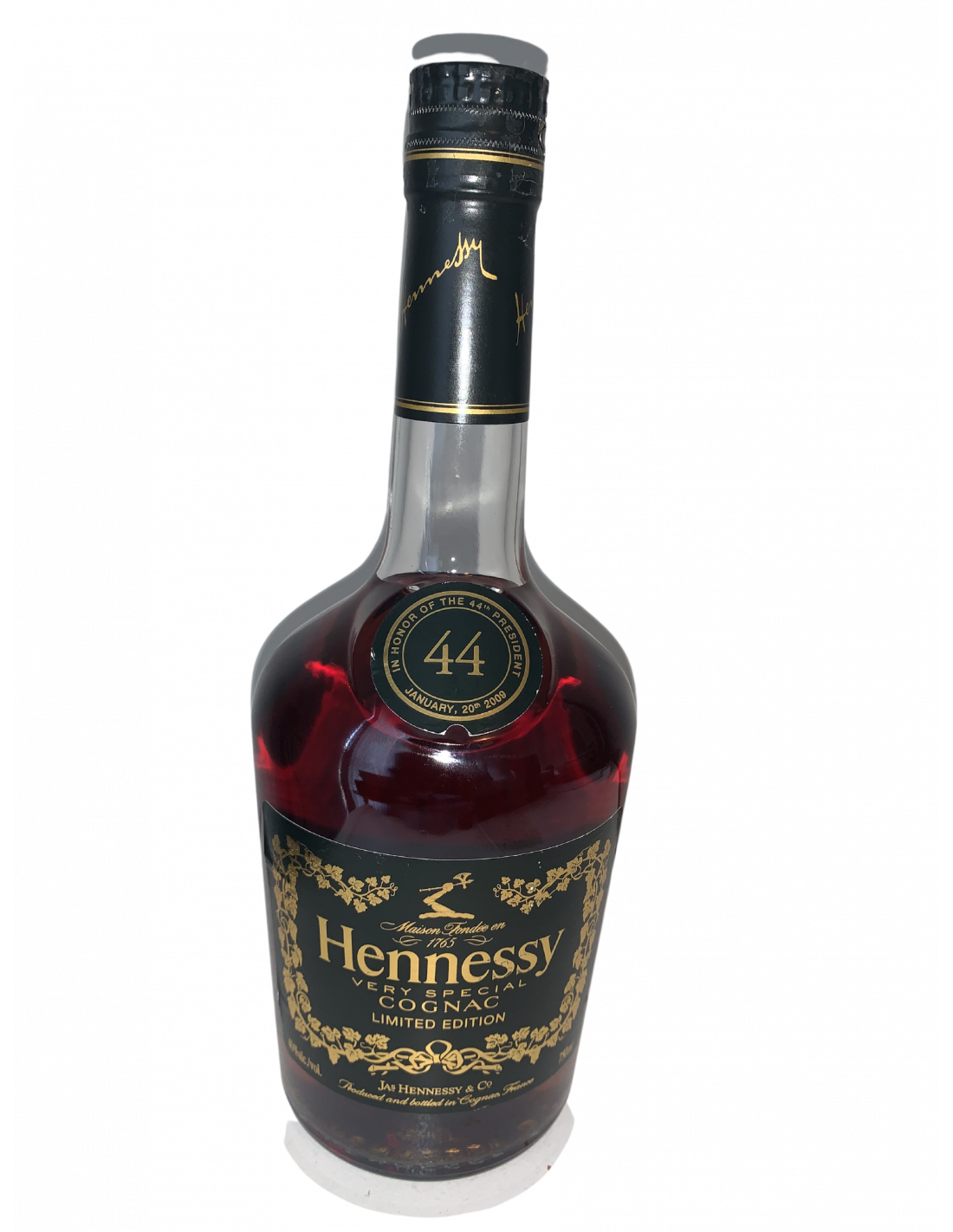 - In honor of the 44th president (44) January, 20th 2009. Hennessy Very Special Cognac limited edition. Maison Tondee en 1765 Jas Hennessey & Co. 40%alc./vol 750ml Produced and bottled in Cognac, France