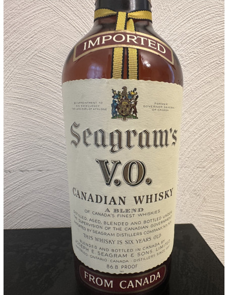 - VO Seagram’s Fifth (in white case/Red seal) Imported in bottle. Canadian whiskey. A blend of 86.8 proof. This whiskey is 6 years old. 4/5 quart. Joseph E. Seagram & Sons, Limited. Waterloo Ontario-Canada. Imported By Seagram Distillers co...