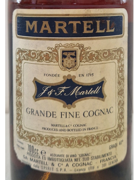 - J & F Martell Grande Fine Cognac Produced and bottled in France Licenza Utif n. 391 Genova