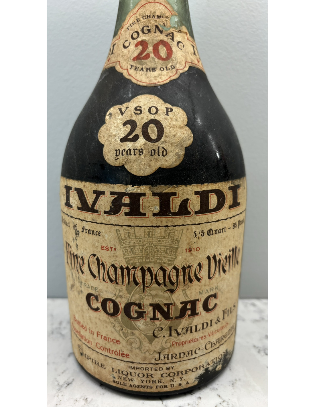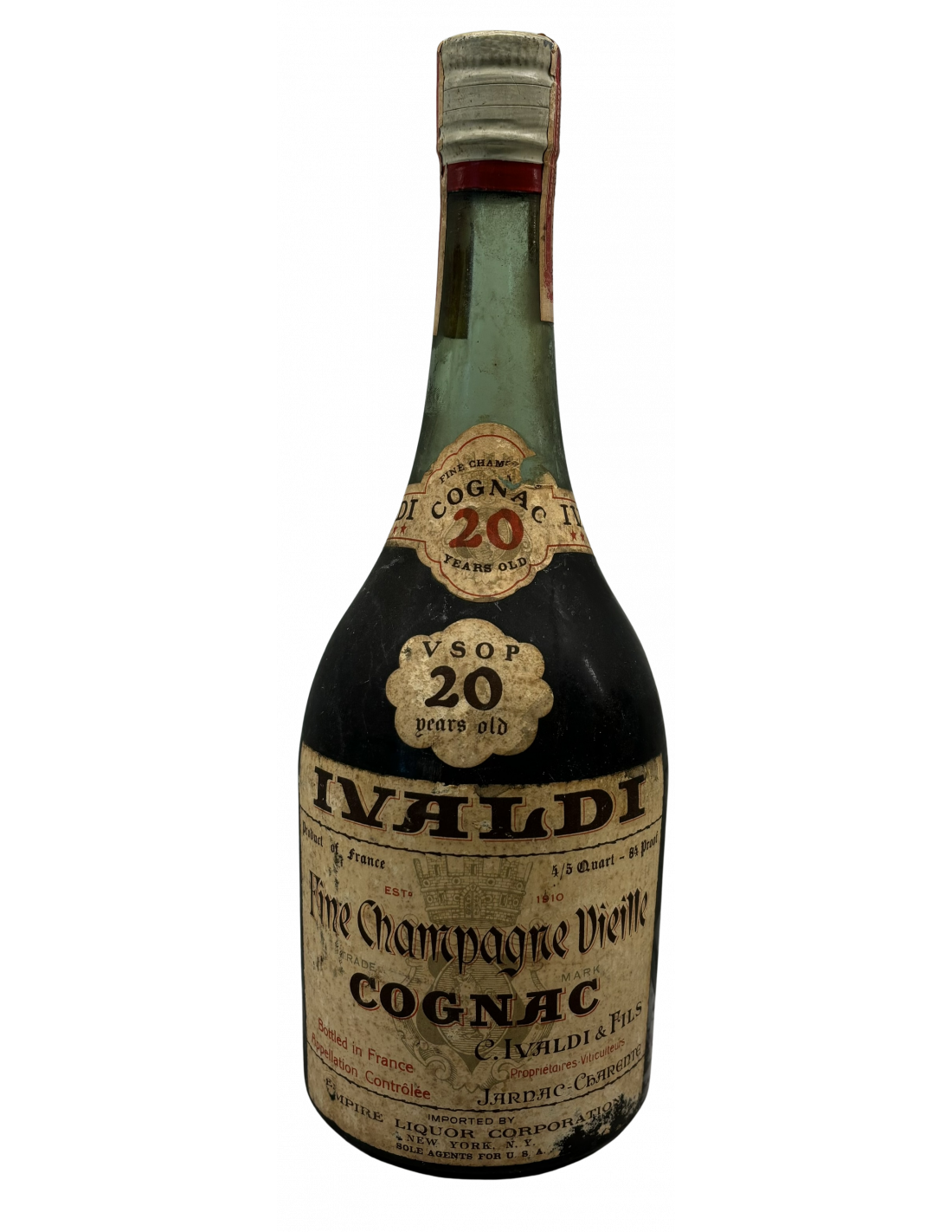 - "Ivaldi" Product of France 4/5 Quart 84 Proof Fine Champagne Vieelle COGNAC C. Ivaldi & Fils Appellation-Controlee Jarnac-Charente Imported by Empire Liquor Corporation New York, N. Y. Sole Agents for U.S.A.