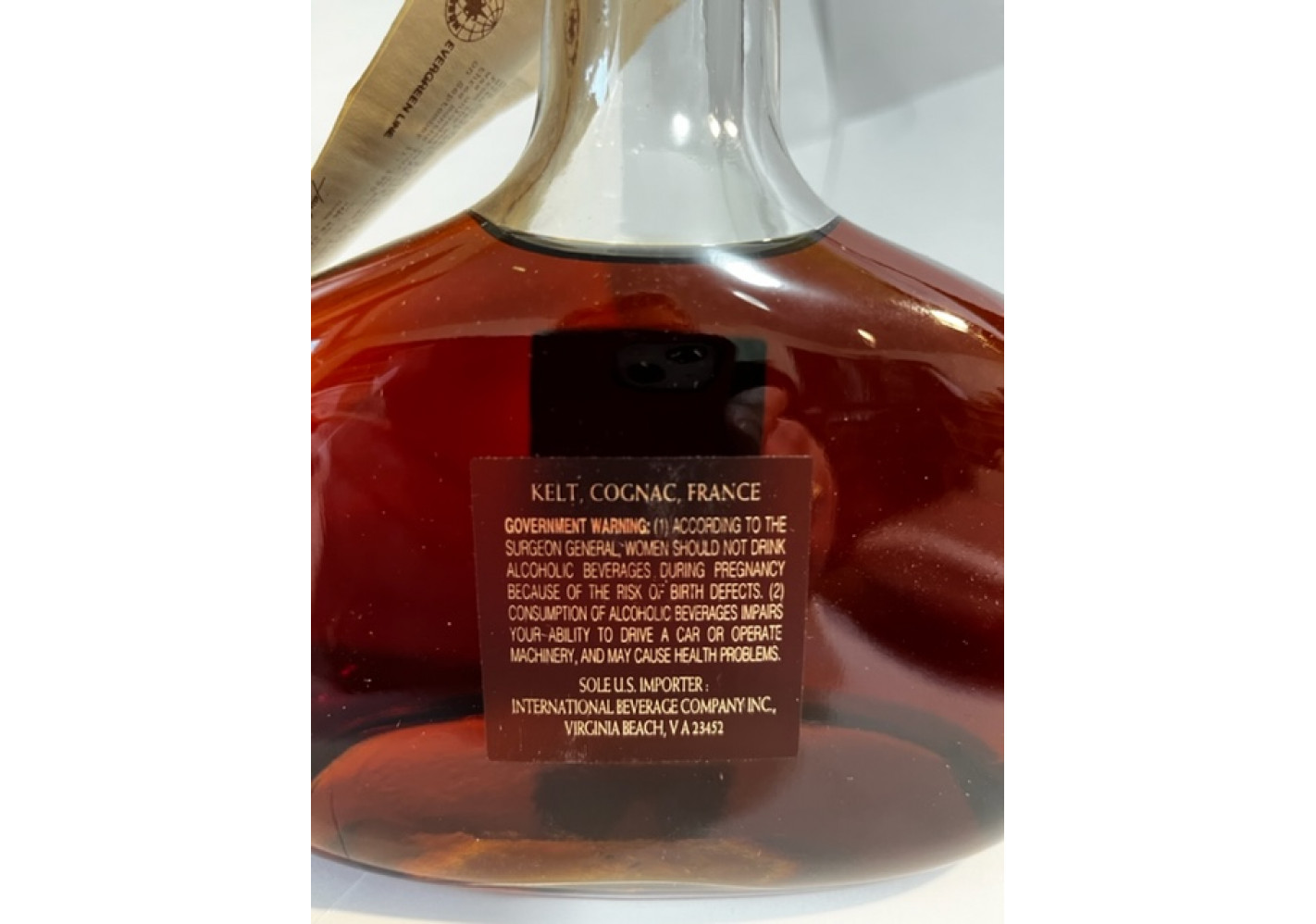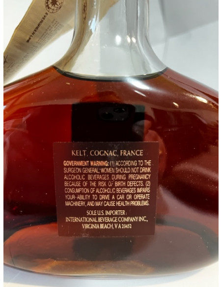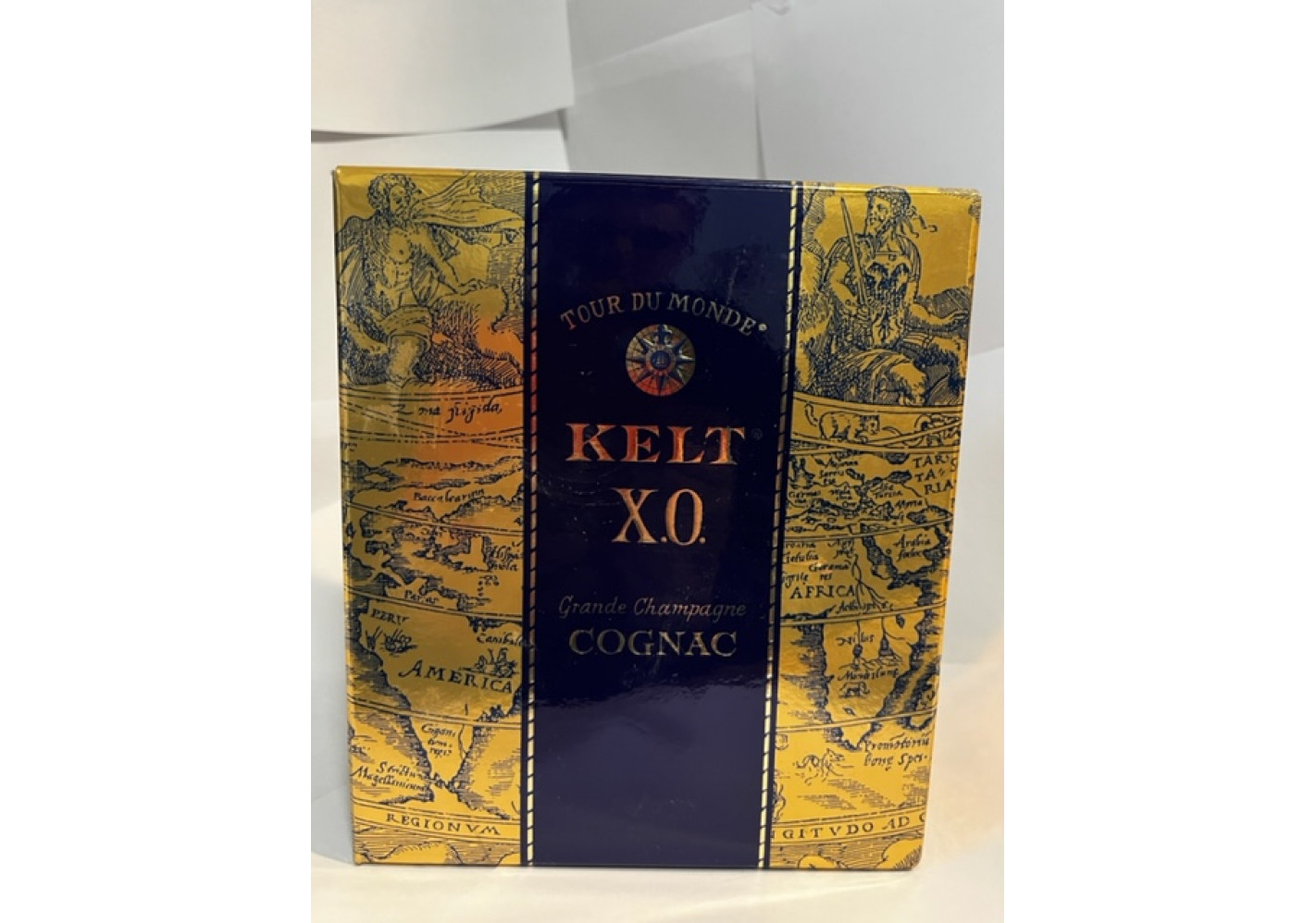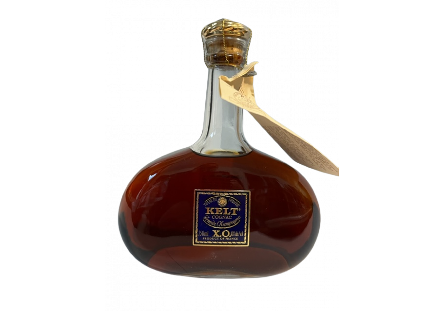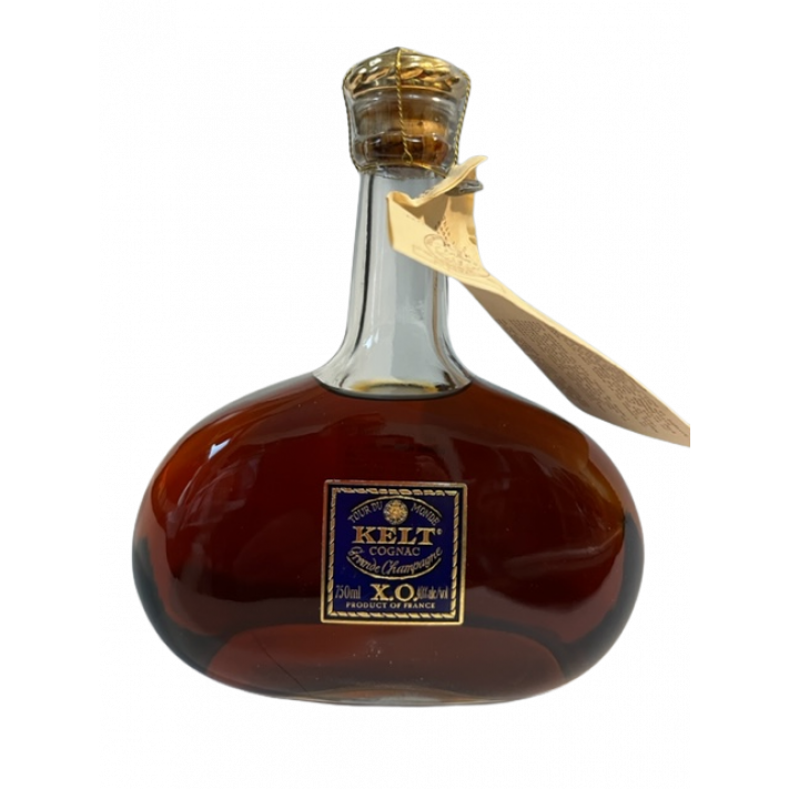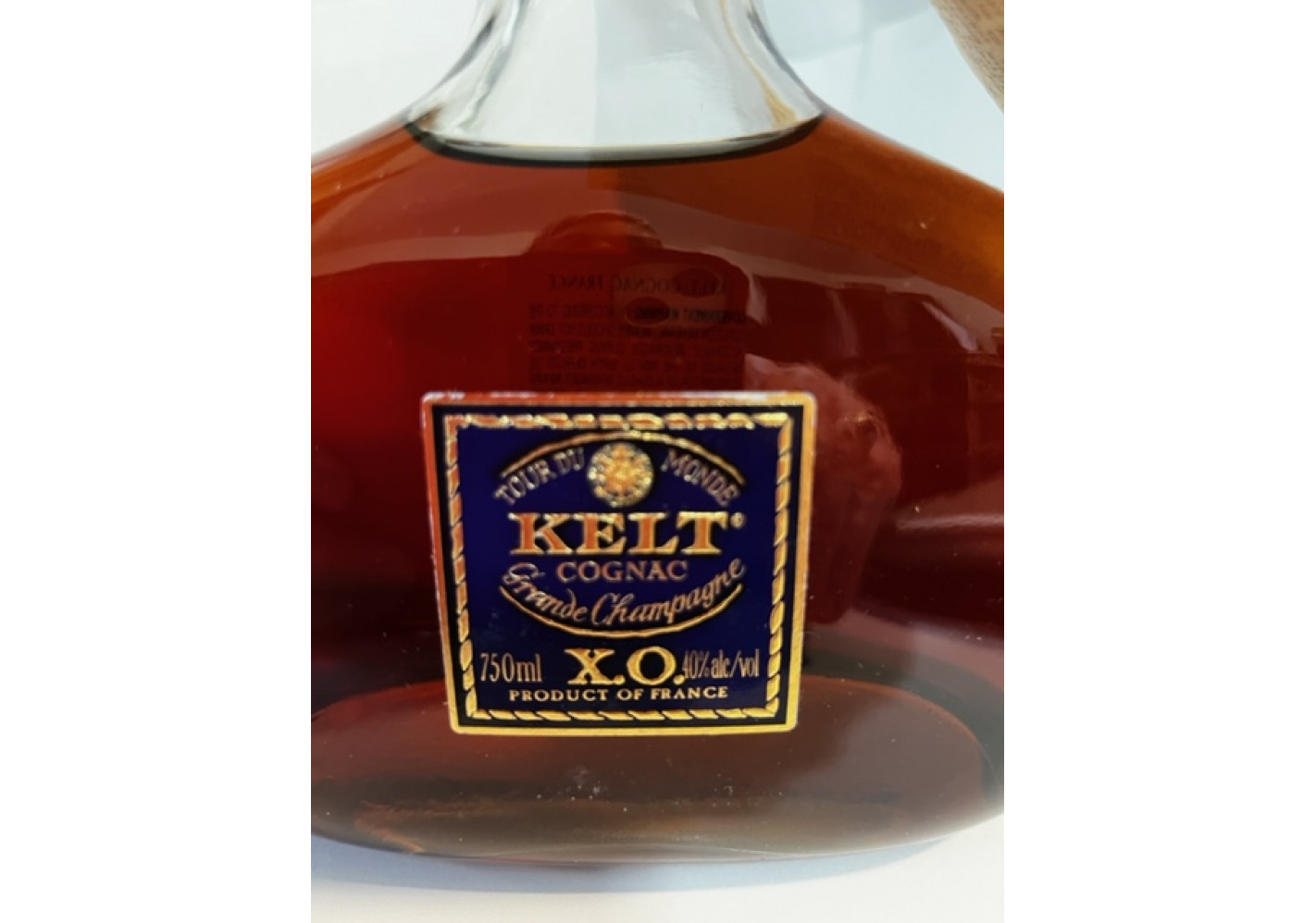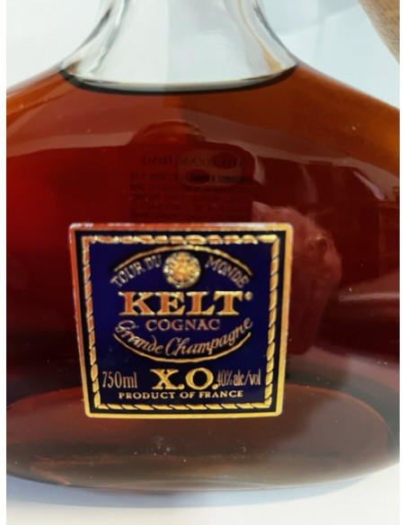 Text on label: kelt cognac grande champagne xo product of france 750 ml