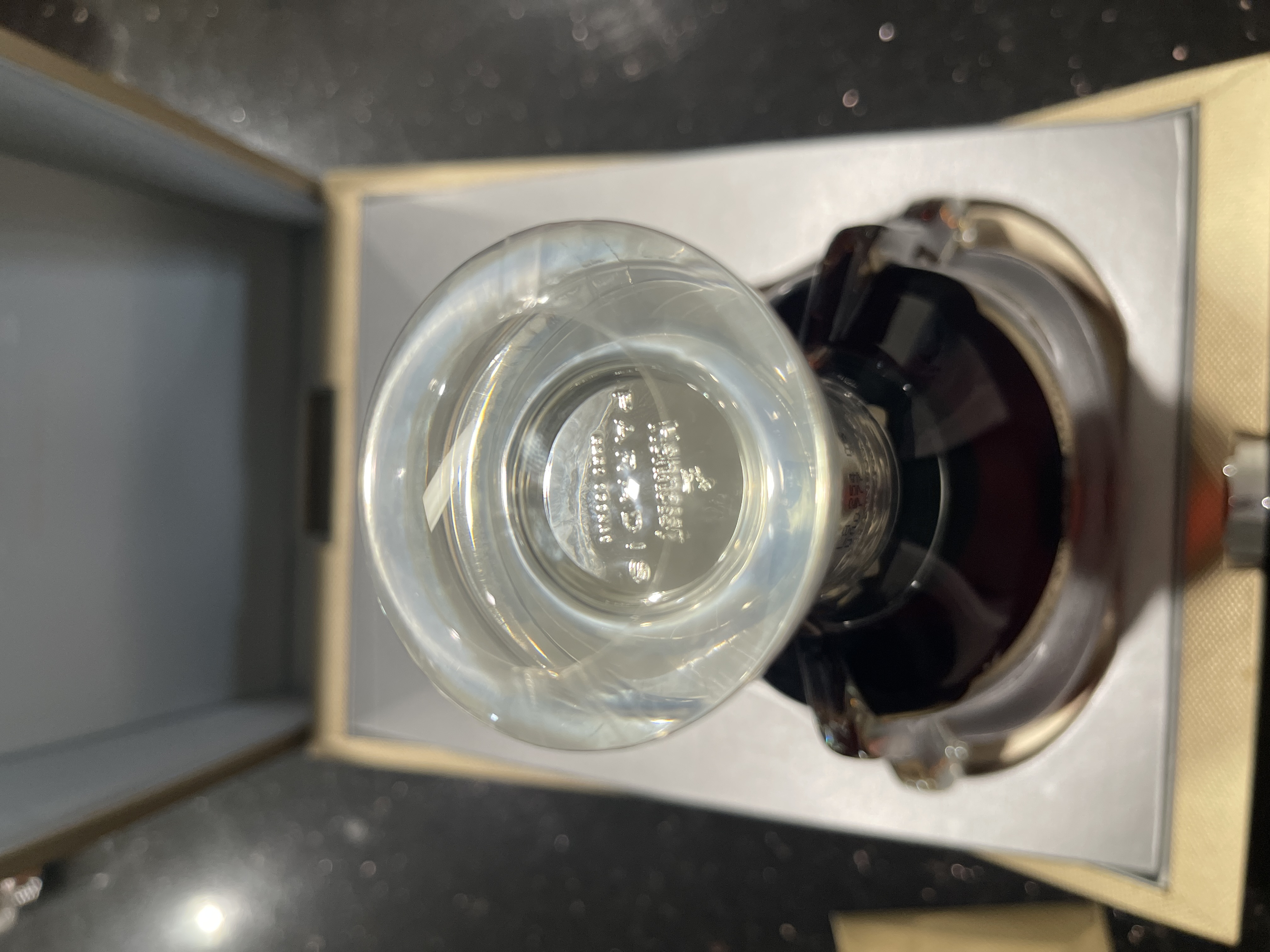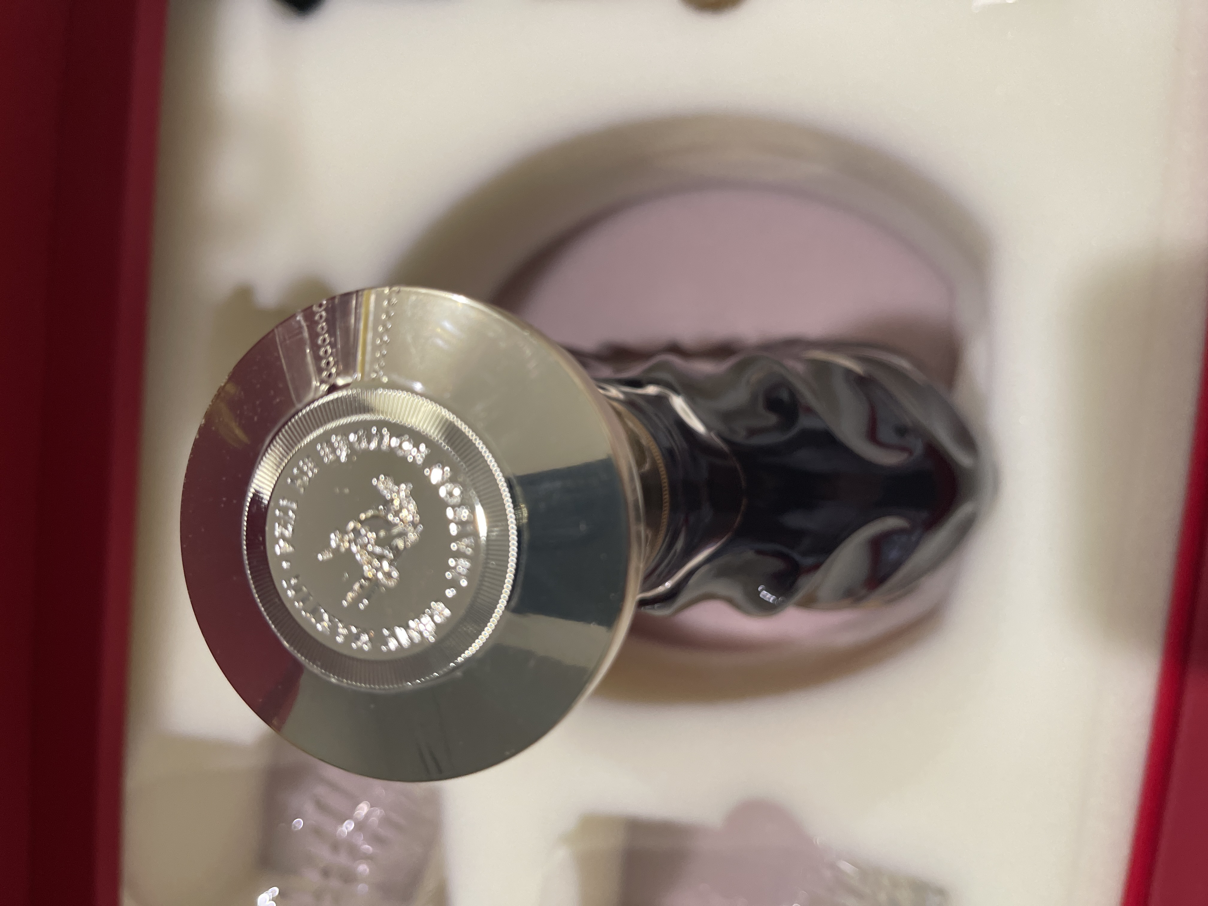- Gift set was given to me 15 years ago. Still in original gift box with 2 glasses. 750ml.