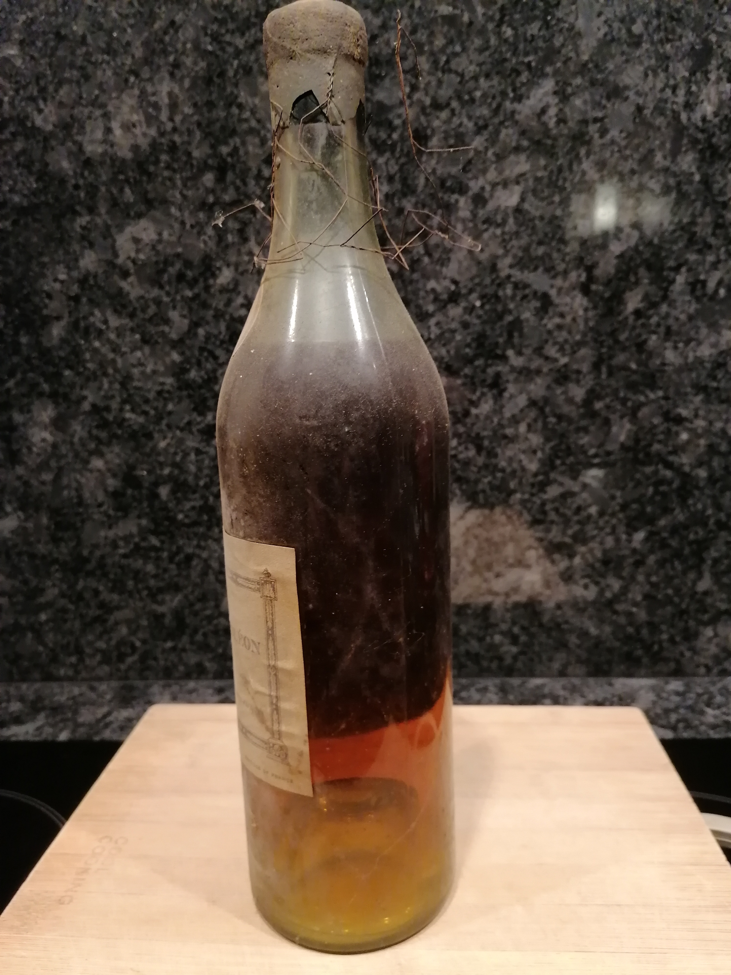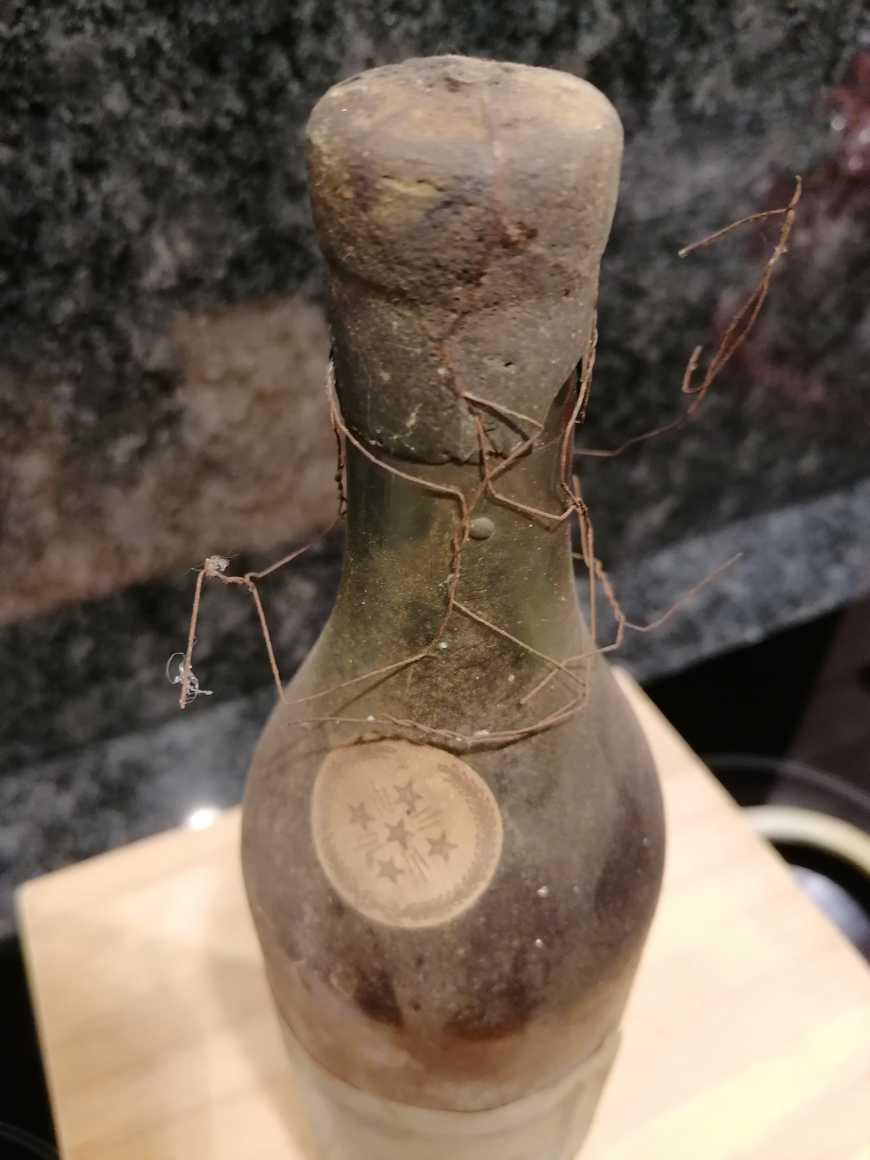 - Gift from cliënt, botle came from a cellar from his grandmother who past away . When cleaning the house the cellar seemed smaller thans the house, so hé discover they build a wall before the second word war. Became this botle in 1998