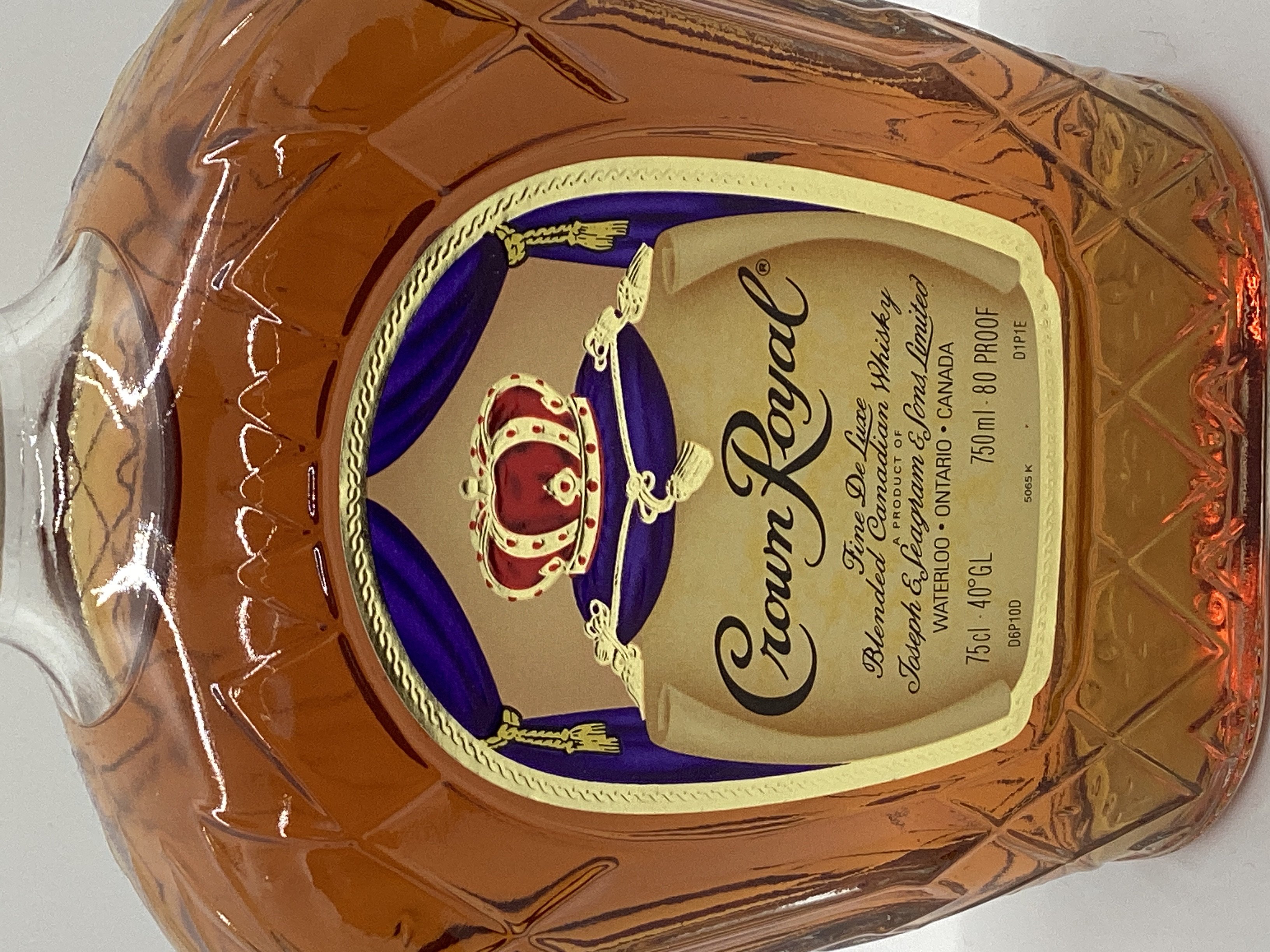 - Crown Royal Fine De Luxe Blended Canadian Whisky A product of Joseph E Seagram & Sons Limited Waterloo Ontario Canada 75cl 40GL 750ml 80 PROOF D6P10D 5065 K D1P1E