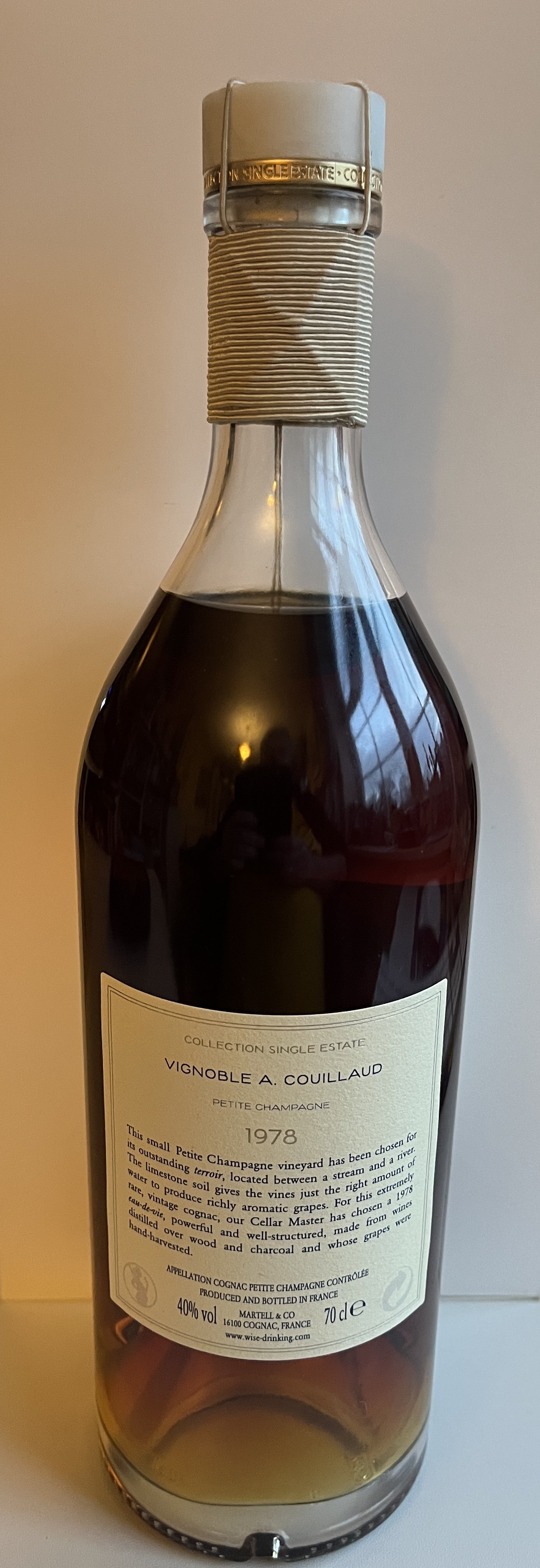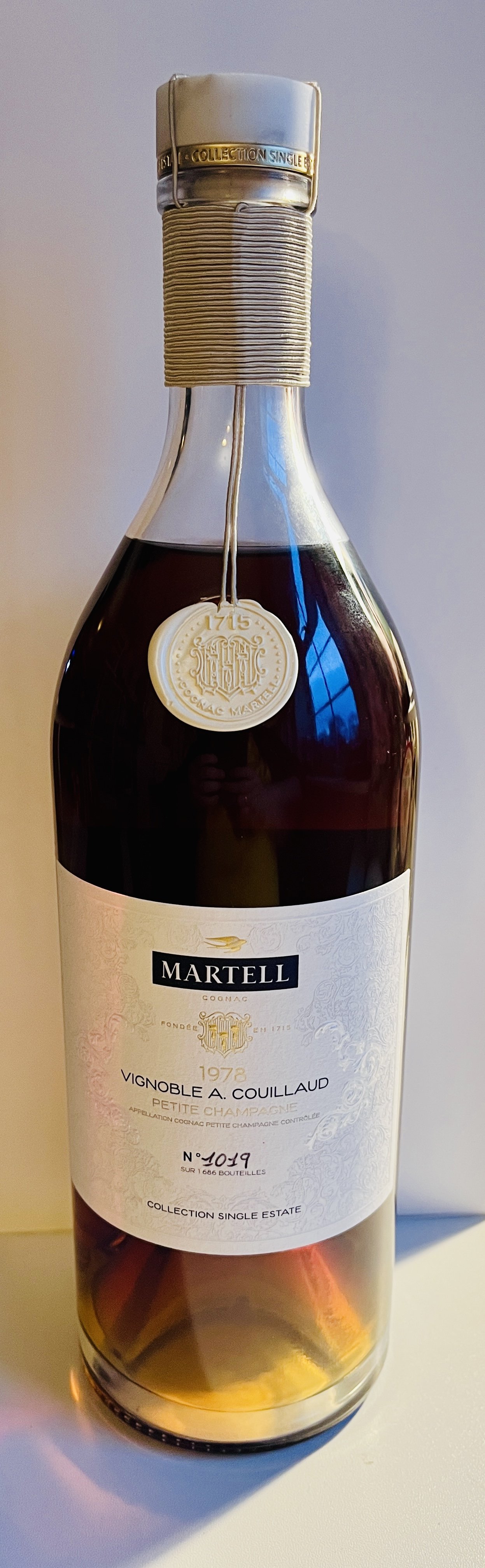 - MARTELL 1978 VIGNOBLE A. COUILLAUD PETITE CHAMPAGNE NO.1019 SUR 1686 BOUTEILLES COLLECTION SINGLE ESTATE