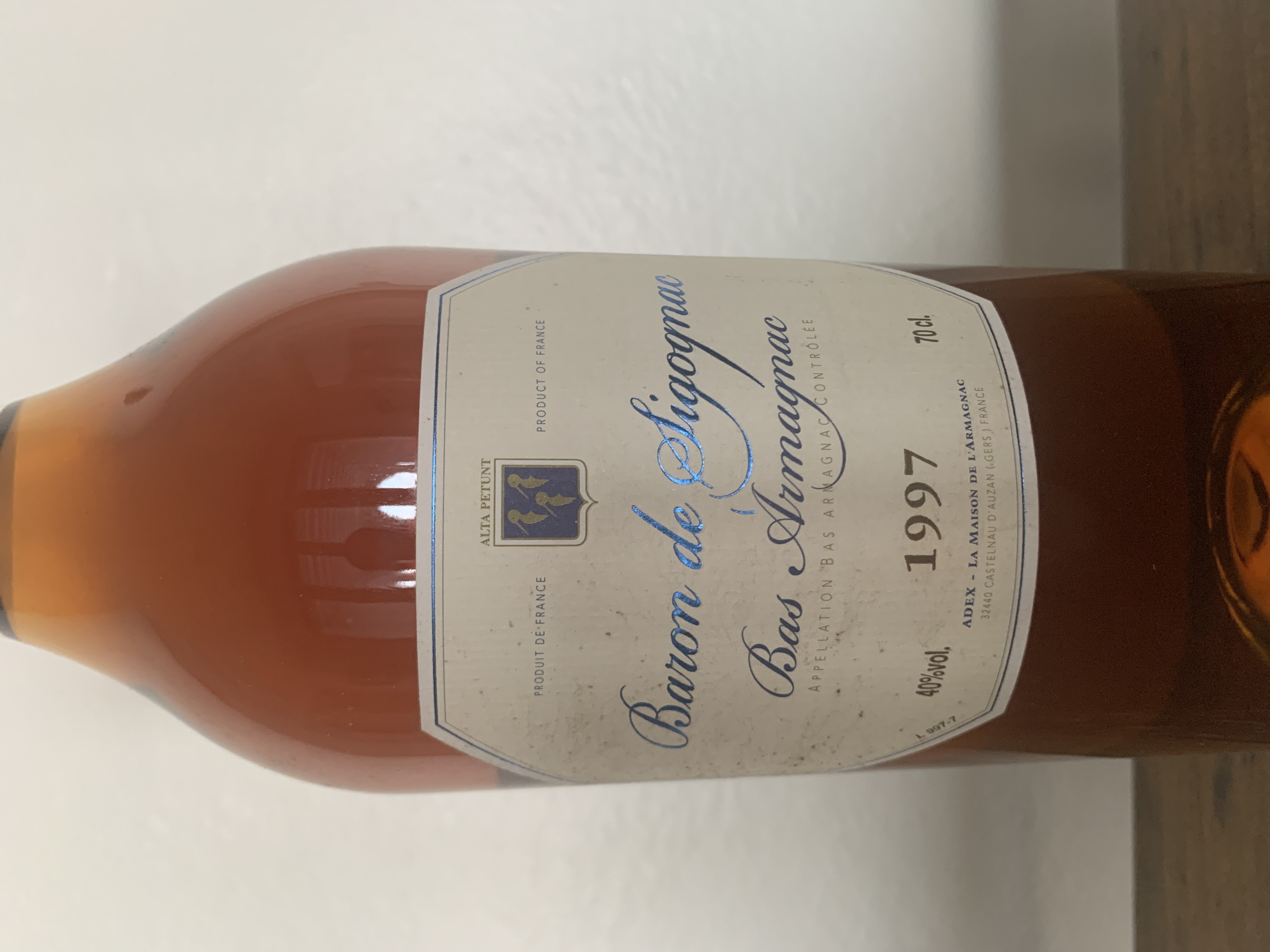 - Produit de France Alta Petnut Baron de Sigognac Bas Armagnac Appellation Bas Armagnac Controlee 40%Vol 1997 70cl Ad ex - la Maison de L’Armagnac 32440 castelnau d’Auzan (GERS) France