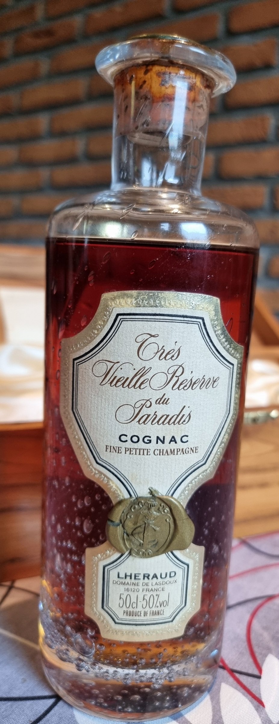 - Trés vieille réserve du paradis Depuis 50 ans, ce cagnac repose dans l'obscurité et au coeur des fûts de chêne, il a aquis sa finesse, son bouquet et sa couleur d'or. Signé Eugéne lhéraud