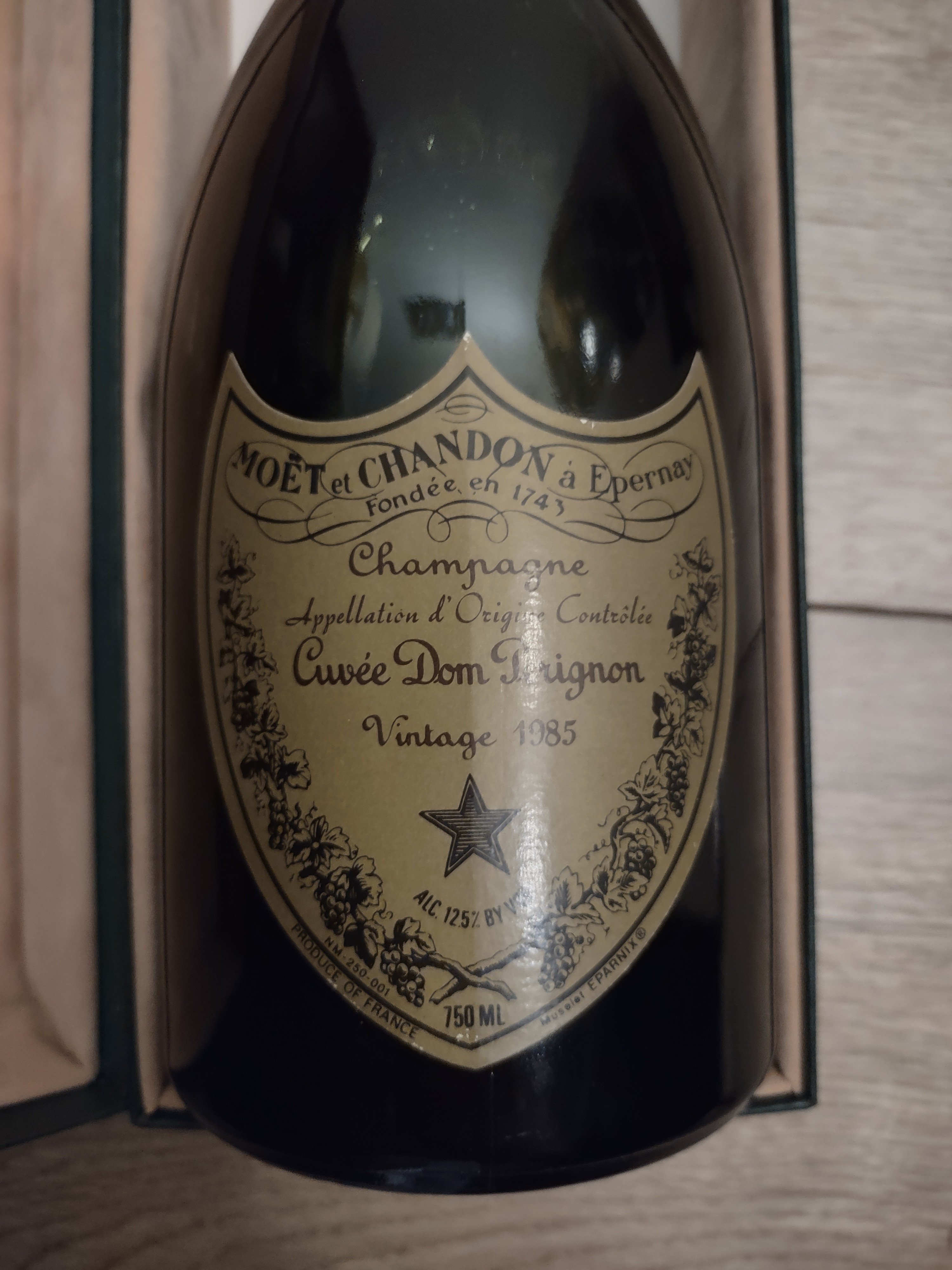 - Moet et a Chandon Epernay Fondee en 1743 Champagne Appellation d Origine Controlee Cuvee Dom Perignon Vintage 1985 ALC 125% BU VOL 750 ML NM - 250-001 Product of France