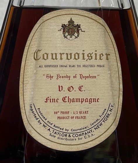 - Courvoisier, all Courvoisier Cognac Bears the Registered Phrase "The Brandy of Napoleon", V.O.C. Fine Champagne, 80 Proof - 4/5 Quart, Product of France, Produced and Bottled by Courvoisier, Jarnac, France. Imported by W.A. Taylor & Company, NY, NY, Sole distributor for the USA