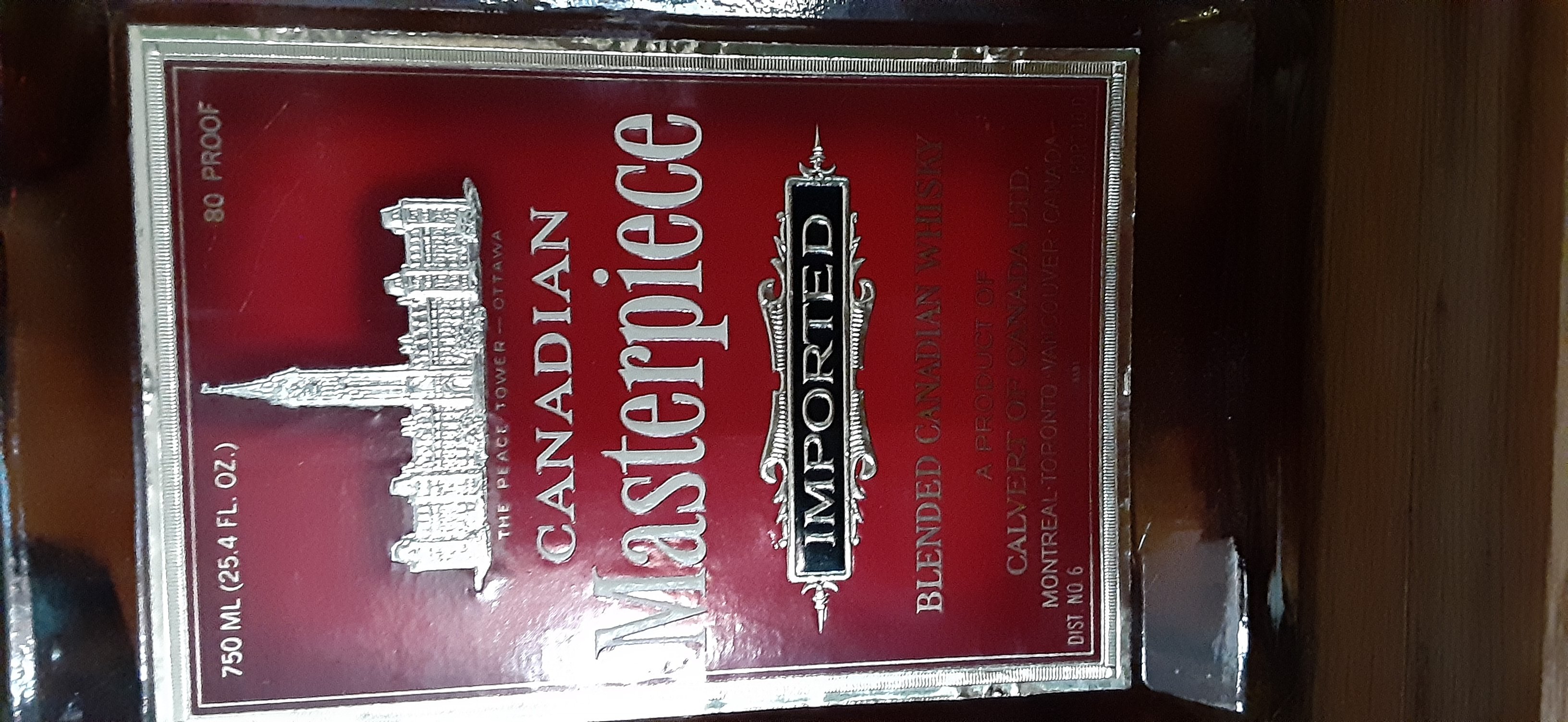 - Canadian Masterpiece imported blended Canadian whiskey a product of Calvert of Canada Ltd Montreal Toronto Vancouver Canada dist 6 Port 10.D