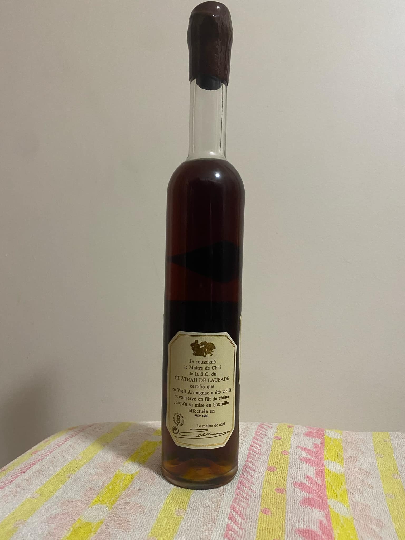 - The brand or producer's name Château de Laubade The vintage year 1949 The appellation Armagnac The alcohol content 40% ABV