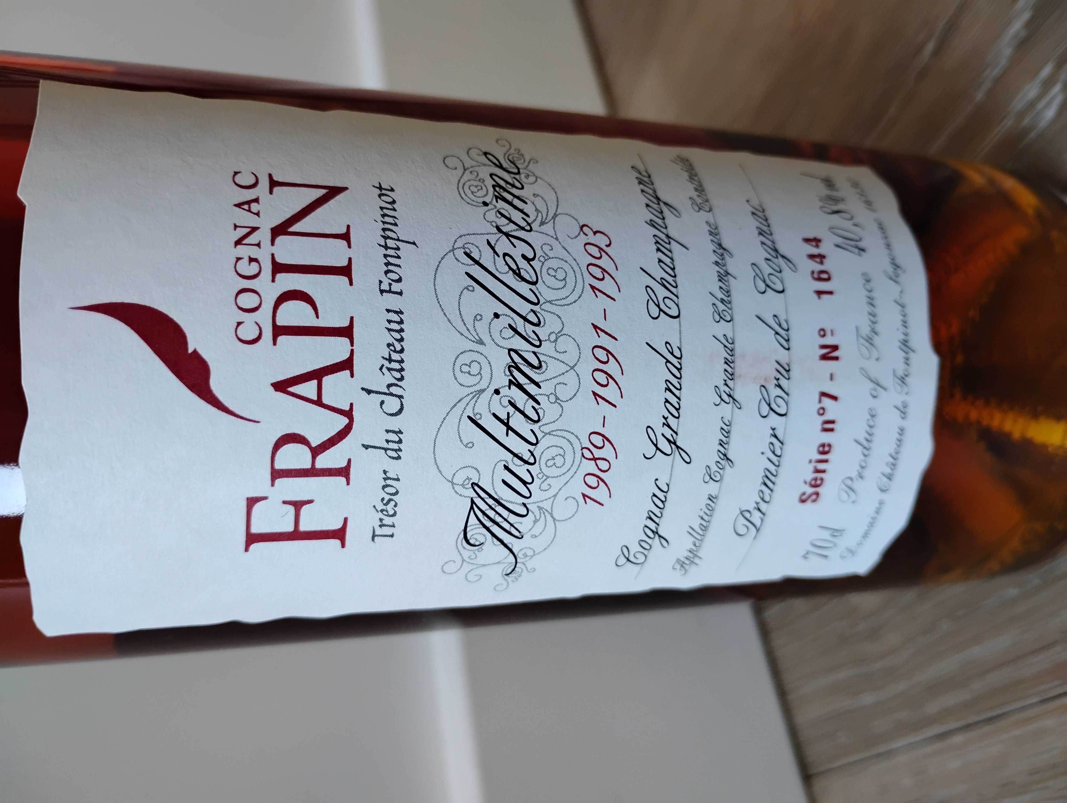 - We went to Frapin house in France. Direct purchase from manufacturer. They only had few millesimes available to try out. Their regular cognacs were nothing special to the taste, not old enough, and out of the 2 millesimes available for tasting, this special blend of 3 millesimes blended together was the best. We bought 1 bottle only, N.1644; I will be looking for the certificate for this bottles of this blend (to be confirmed). With the move from France back to here, still in boxes.