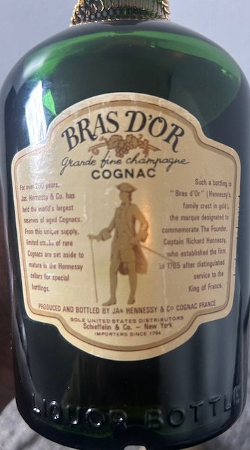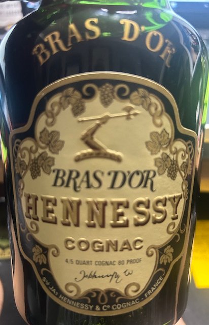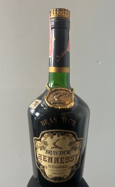 - Bras D'or Hennessy Cognac 4/5 quart Cognac 80 proof Ste Jas Hennessy Co Cognac France State of Maryland tax sticket and U.S. Internal Revenue Distilled Spirits seal