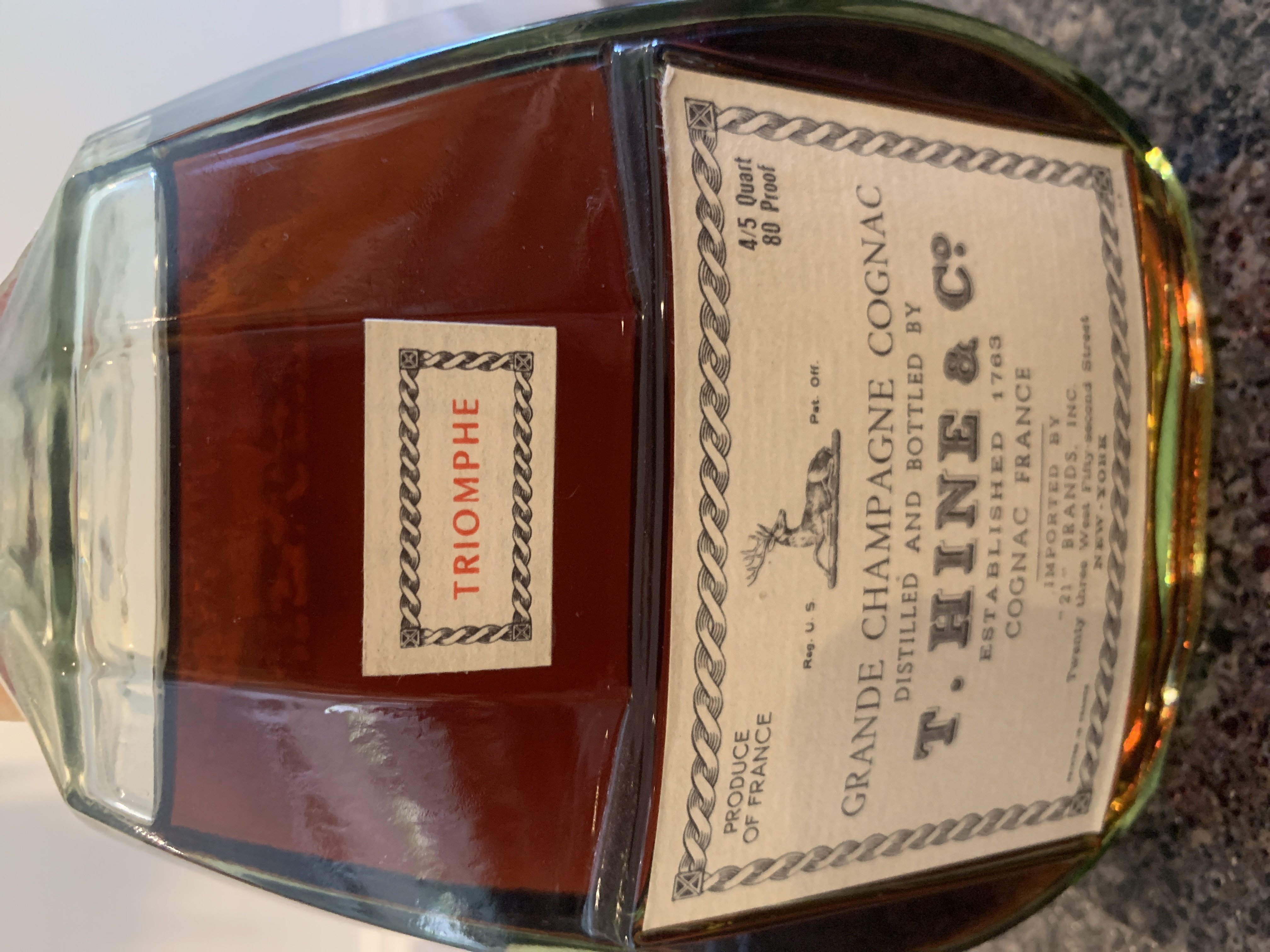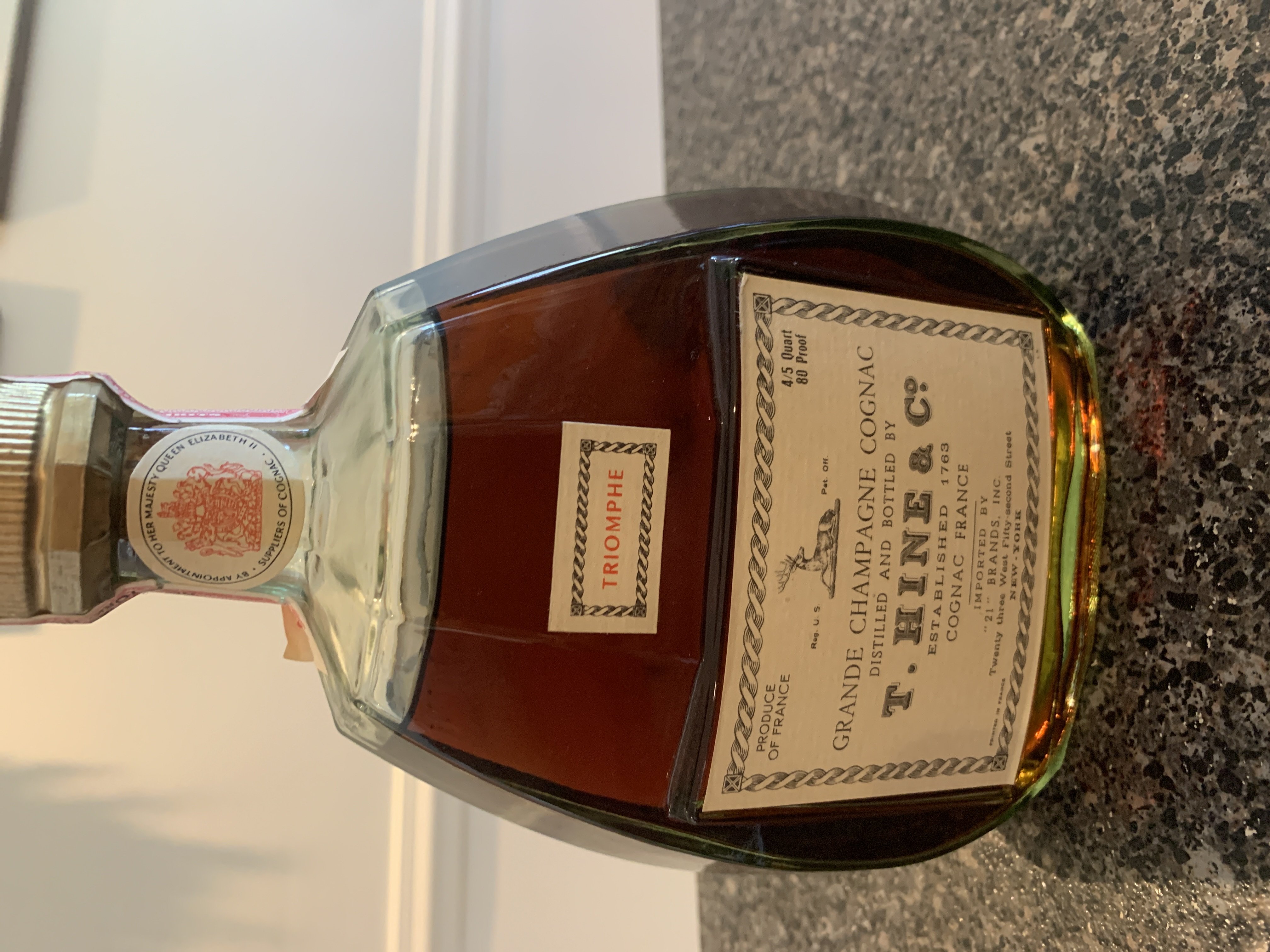- T Hine & Co Grande Champagne Cognac Triomphe 4/5 Quart 80 proof. Tax seal is intact