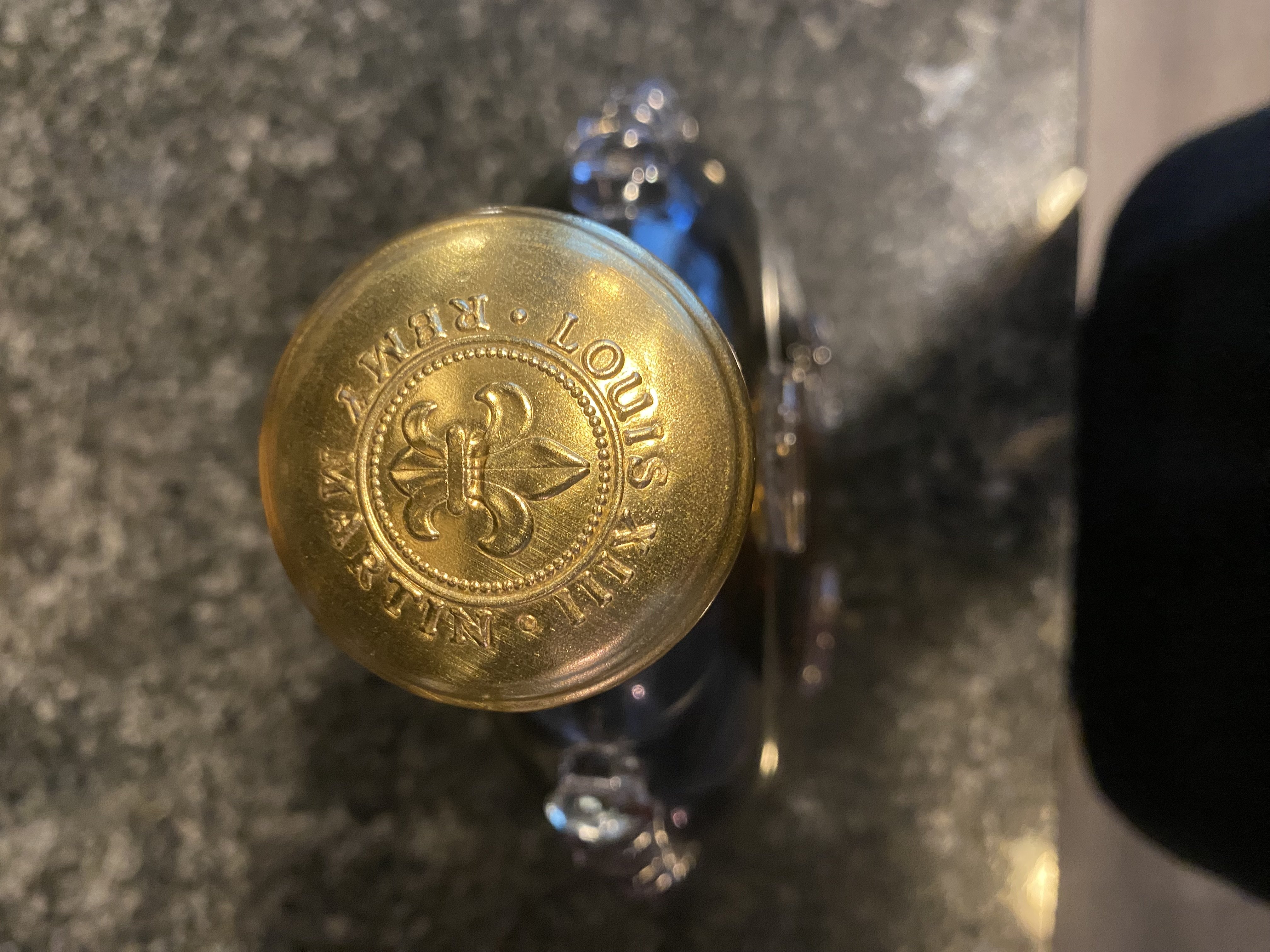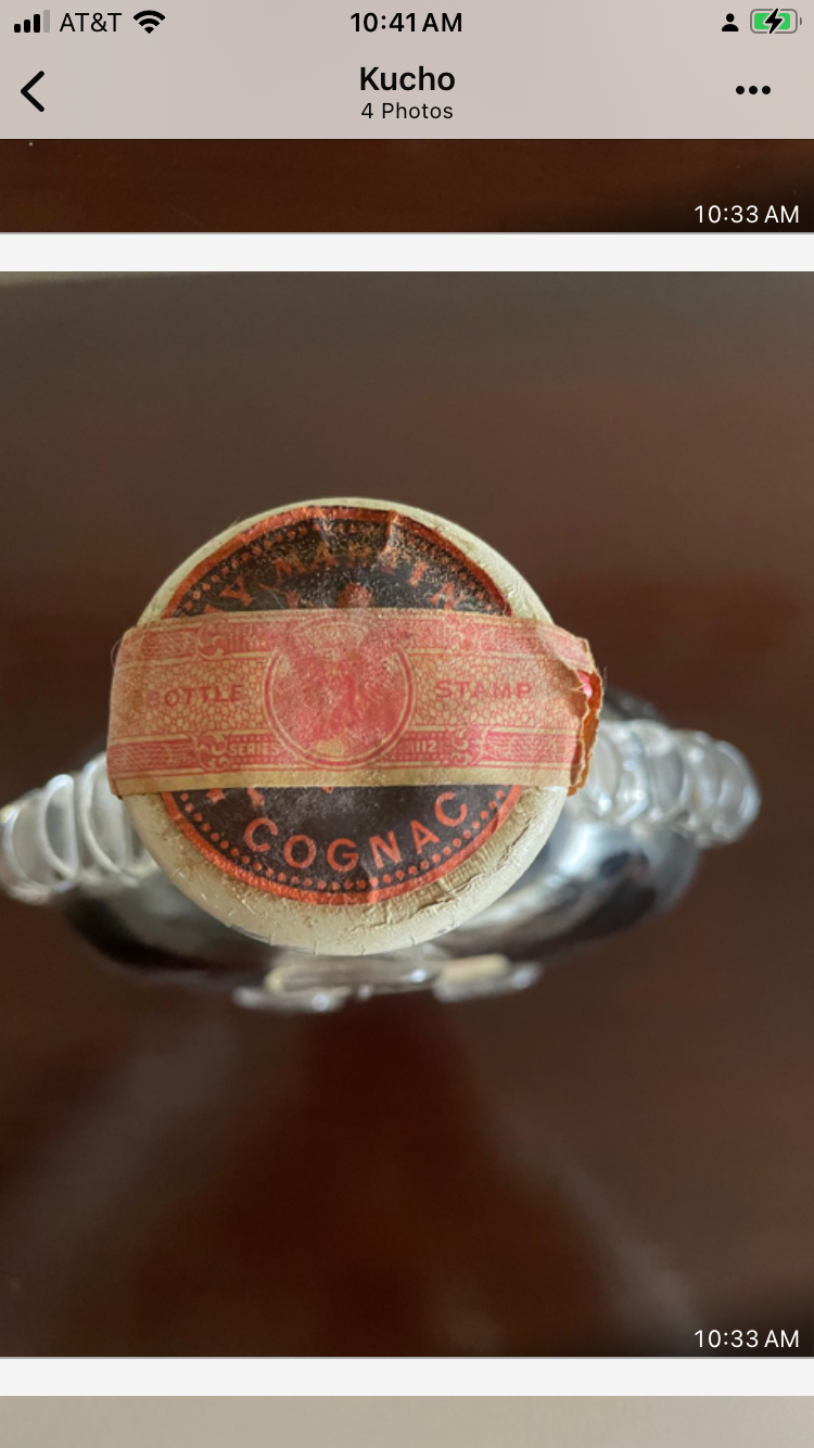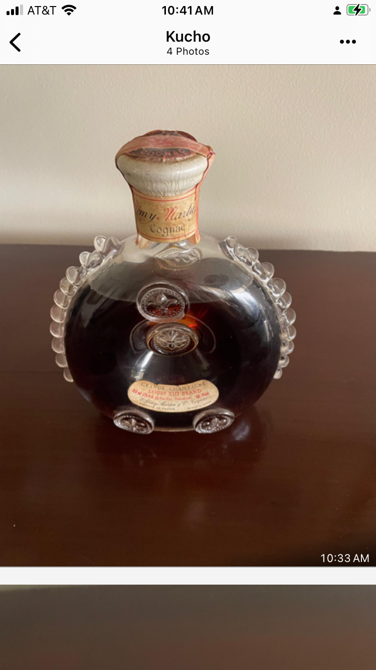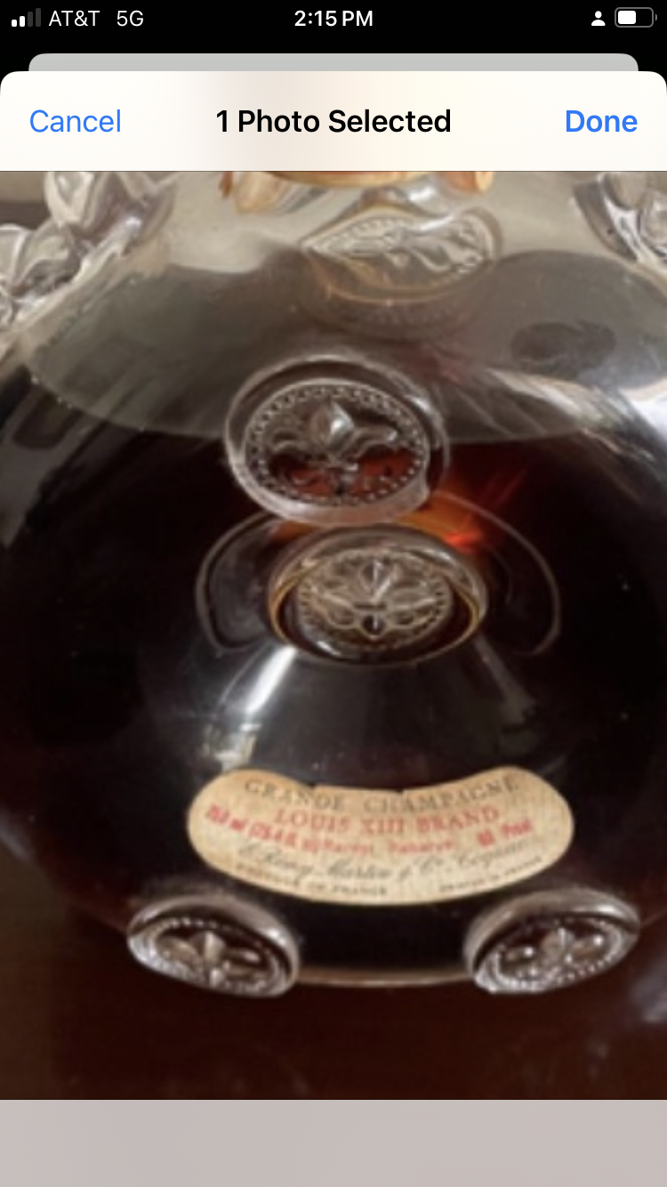 - 1) Text on label: LOUIS XIII Rémy Martin GRANDE CHAMPAGNE COGNAC PRODUCED BY E. RÉMY MARTIN & C° COGNAC, FRANCE IMPORTED BY RÉMY MARTIN AMERIQUE INC. NEW YORK, N.Y. 750 ml 40% ALC./VOL. (From accompanying booklet/packaging) LOUIS XIII Rémy Martin GRANDE CHAMPAGNE COGNAC We appreciate that you have chosen to share the legend of Louis XIII cognac with us. It is a carefully guarded secret, known to only a privileged few. To enter the mythical world of Louis XIII, send us your mailing information, which will be treated in the utmost confidence to the address below. Should you choose to visit us in Cognac, let us know in advance, and it will be our pleasure to welcome you to the home of Louis XIII. Carafe N°: CL9157 2) Visual elements: Bottle: The bottle features several embossed circular medallions with a fleur-de-lis design on the mid label. It also has a distinctive scalloped/rippled glass edge around its circumference. Font style on glass is primarily serif. Stopper: A gold metallic stopper is embossed with a central fleur-de-lis emblem, encircled by the words "LOUIS XIII" and "RÉMY MARTIN" in an embossed serif font. Packaging (Box & Booklet): The box and booklet feature gold rectangular labels against a red textured background. These labels display a gold fleur-de-lis emblem above the product name. Font styles on the main labels are serif; the body text inside the booklet is sans-serif, with "Louis XIII" rendered in serif. 3) Fill level estimate: well above shoulder into neck: great