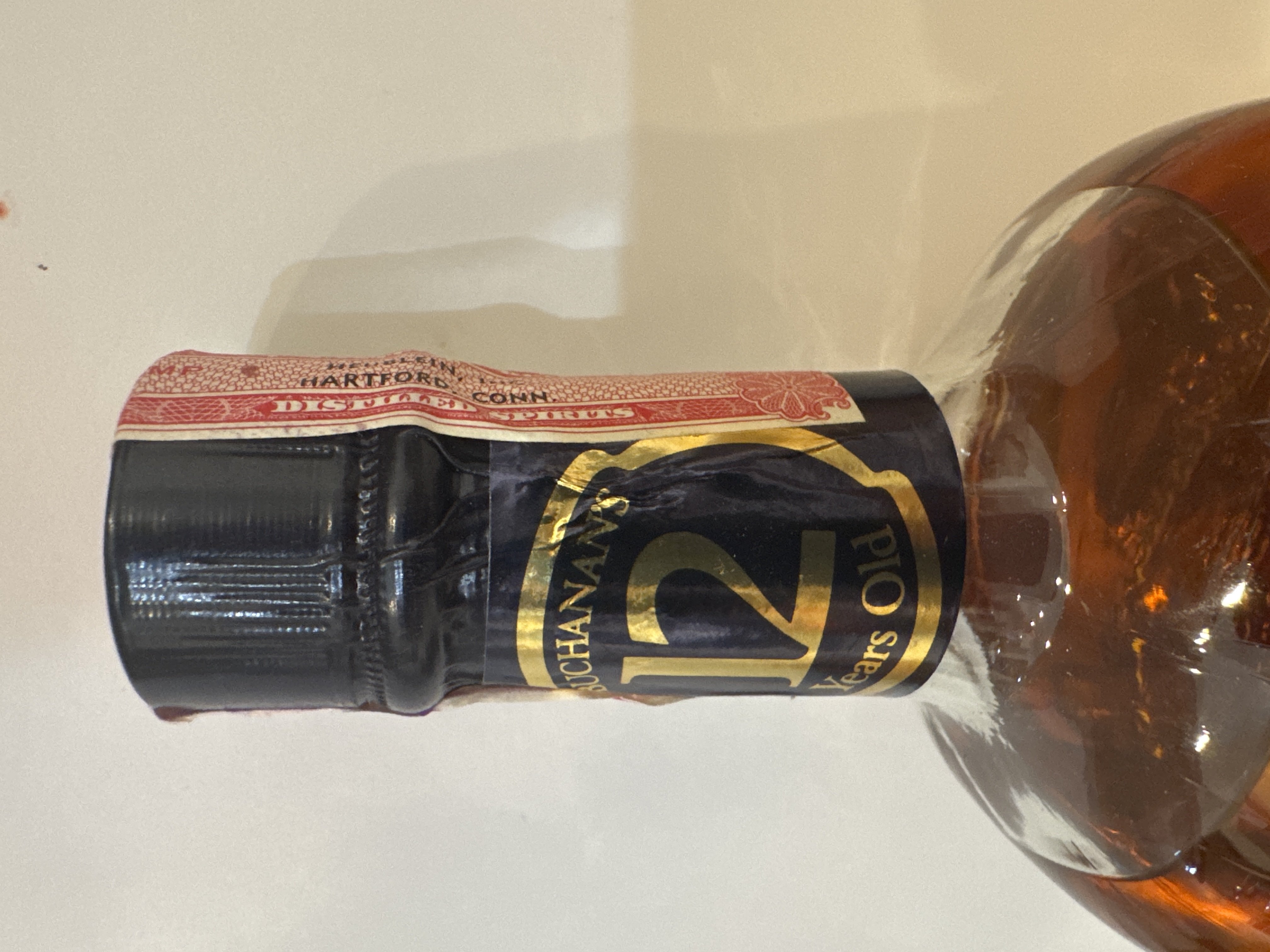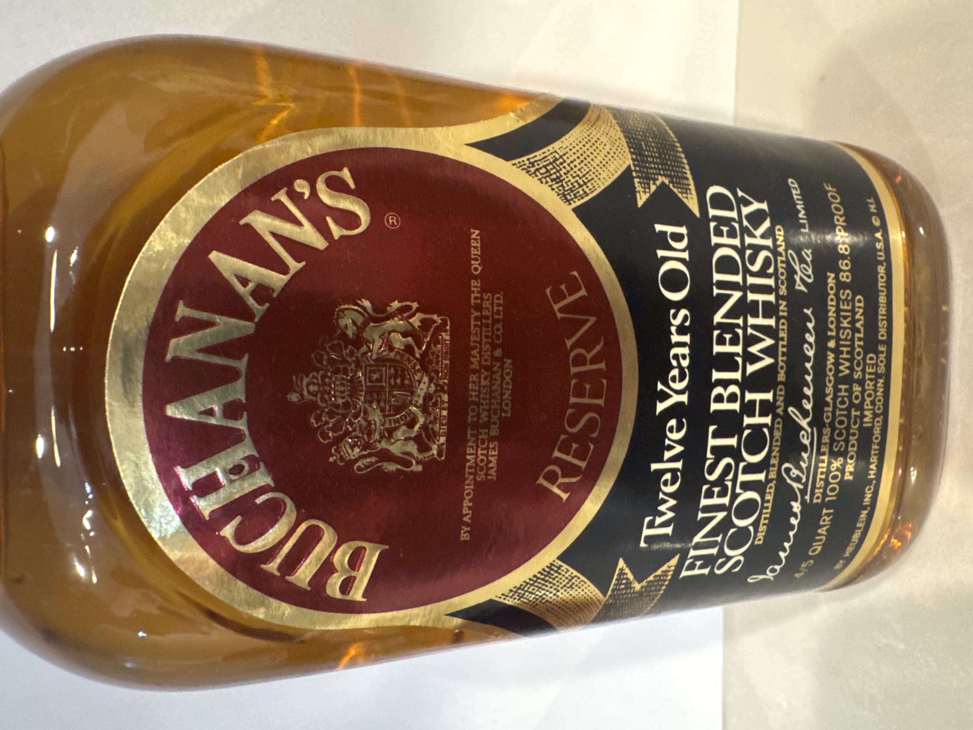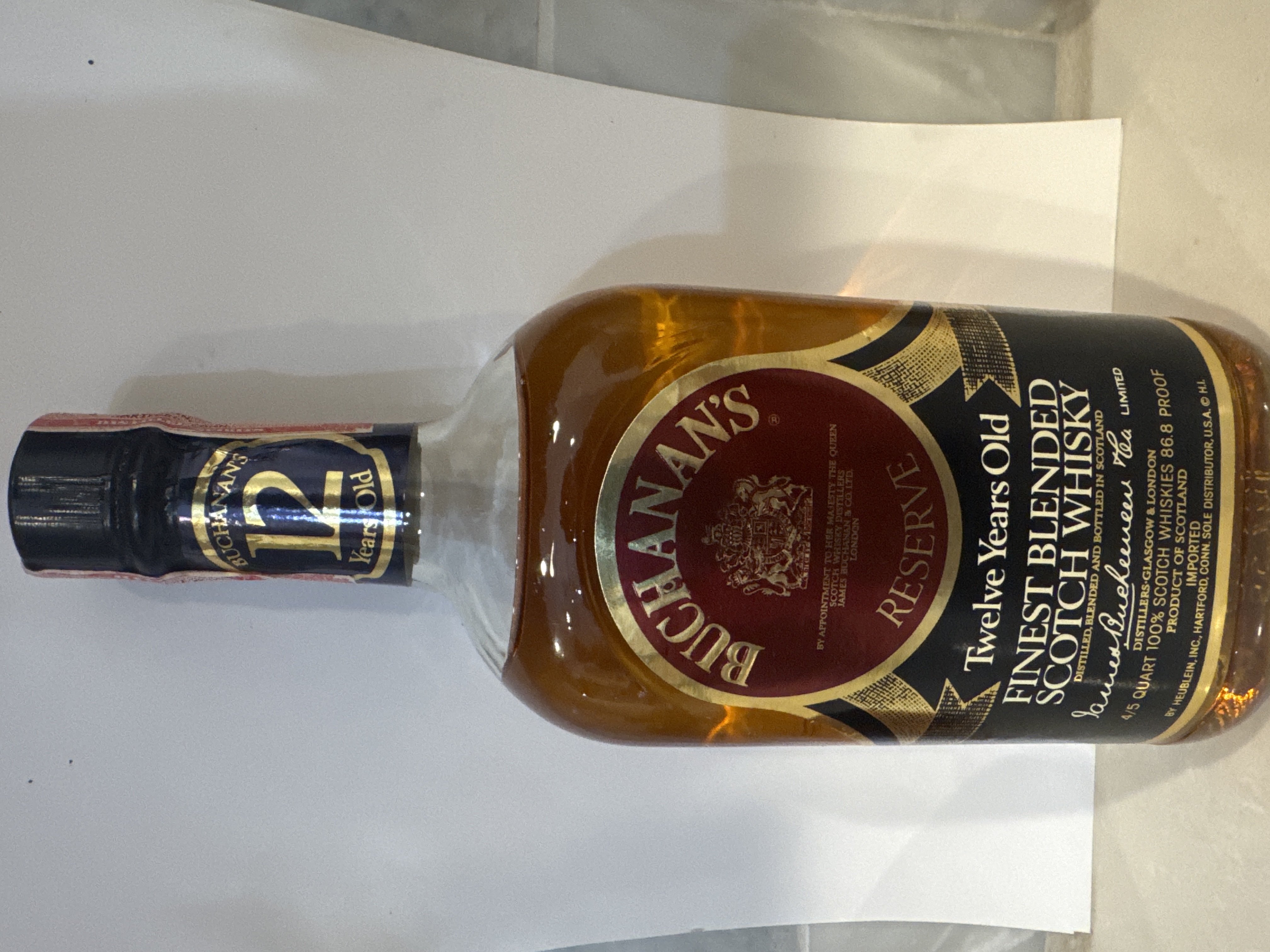 - This bottle was part of a family collection and has been carefully stored for many years. It is an original Buchanan’s Reserve 12-Year-Old, imported by Heublein Inc., Hartford, Connecticut, likely produced in the late 1970s or early 1980s. The bottle remains sealed, with its original wooden presentation box and packaging paper intact.