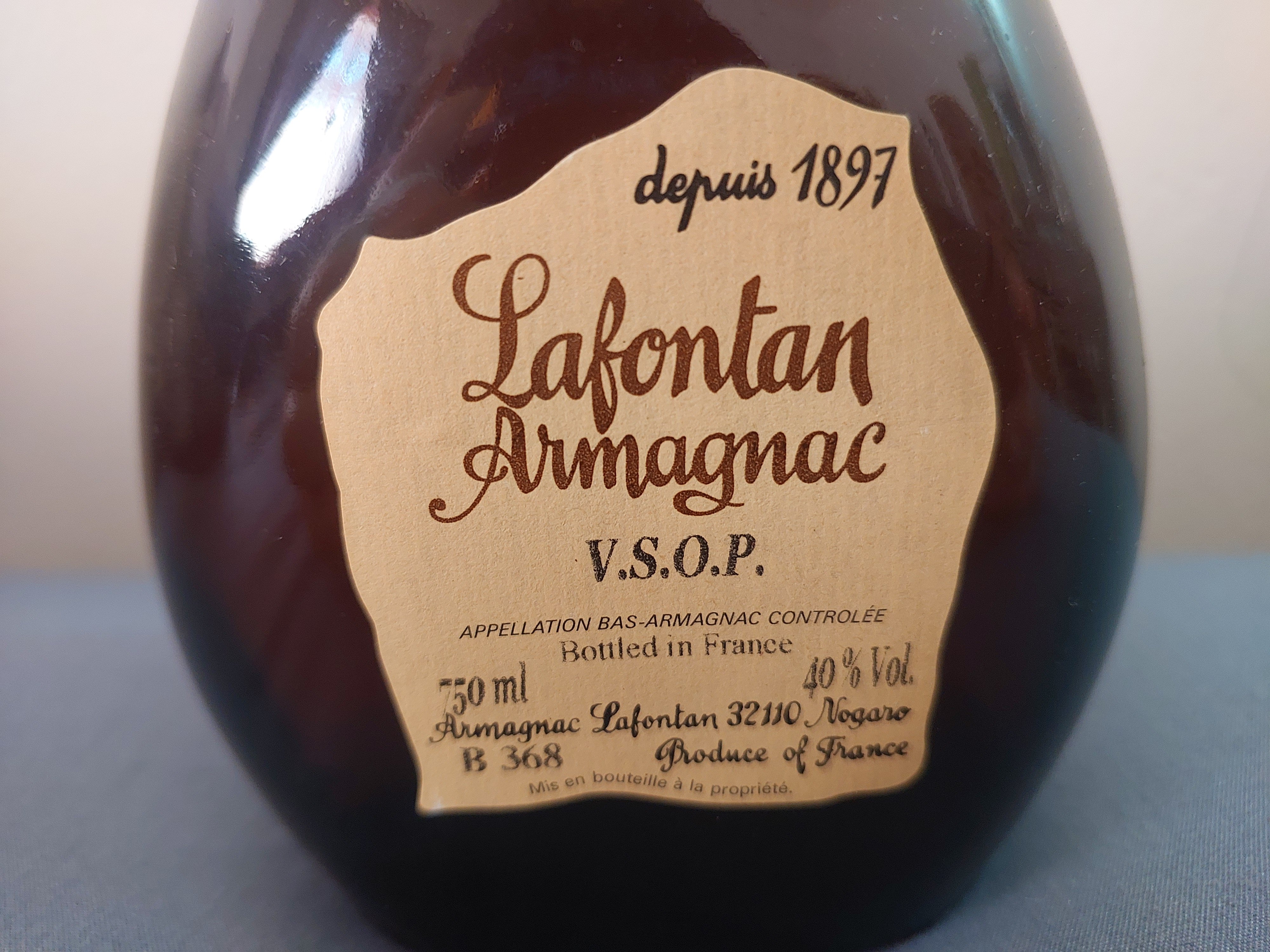 - depuis 1897 Lafontan Armagnac V.S.O.P Bottled in France 40% Vol Armagnac Lafontan 32110 Nogaro Produce of France B368