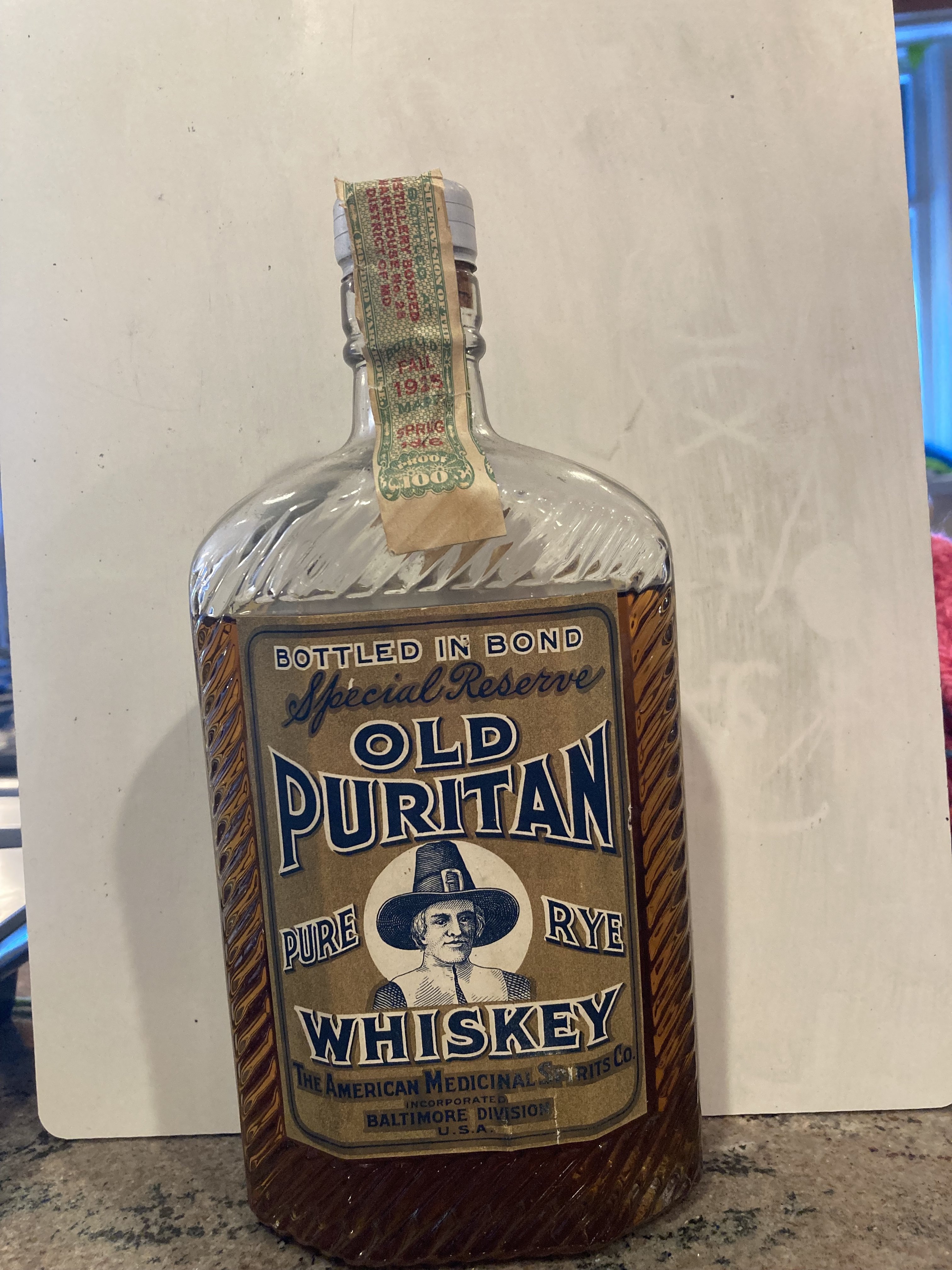 - Bottled in Bond Special Reserve Old Puritan Pure Rye Whiskey The American Medicinal Spirits Co. Baltimore Division USA