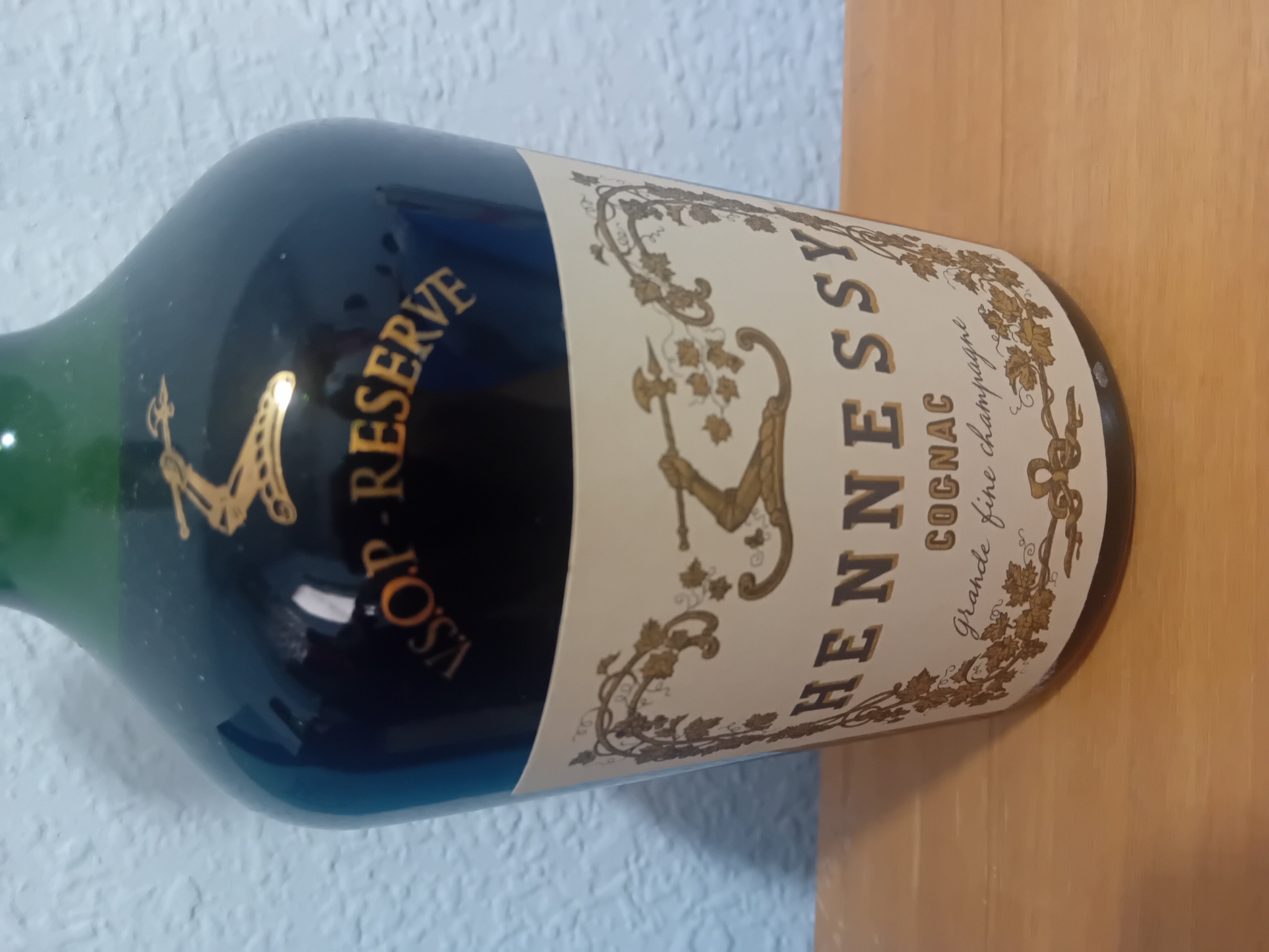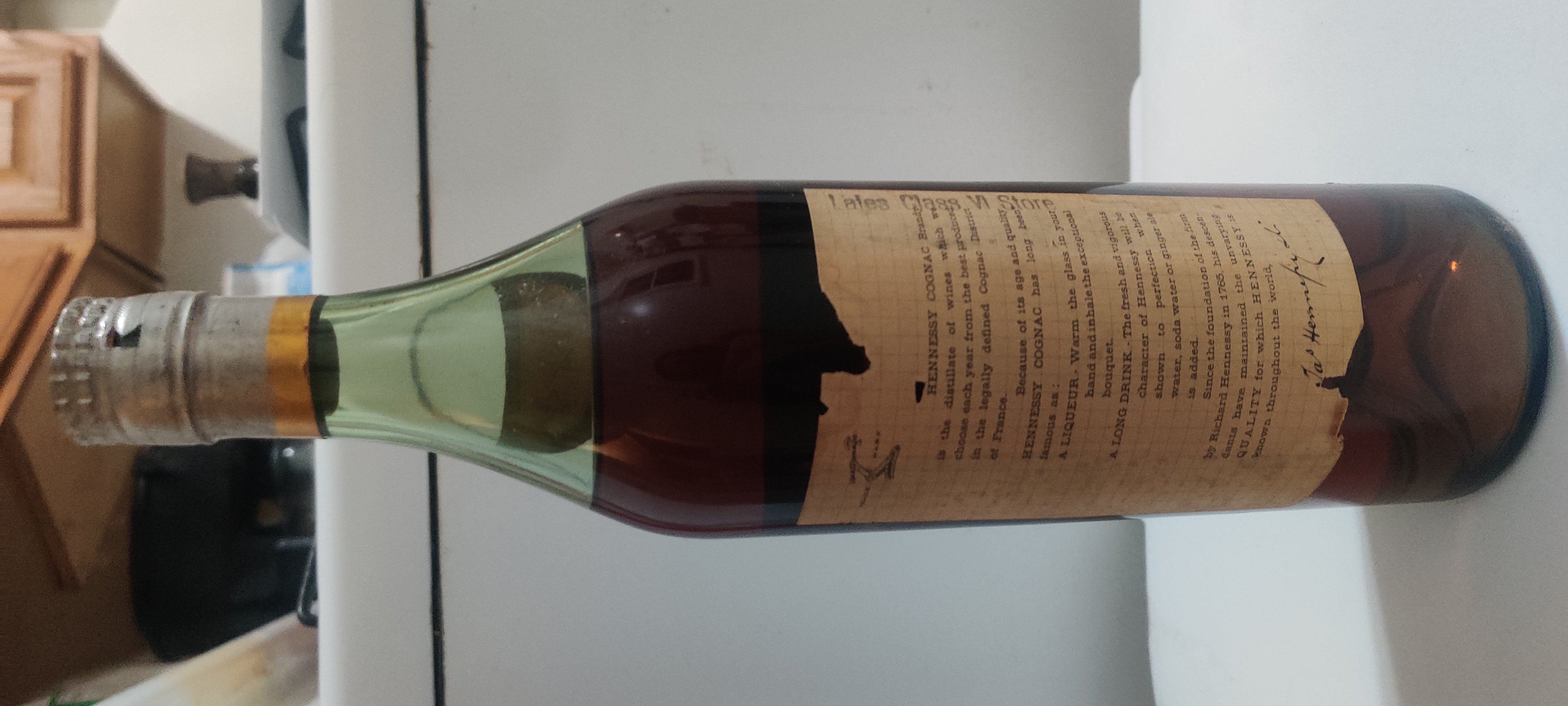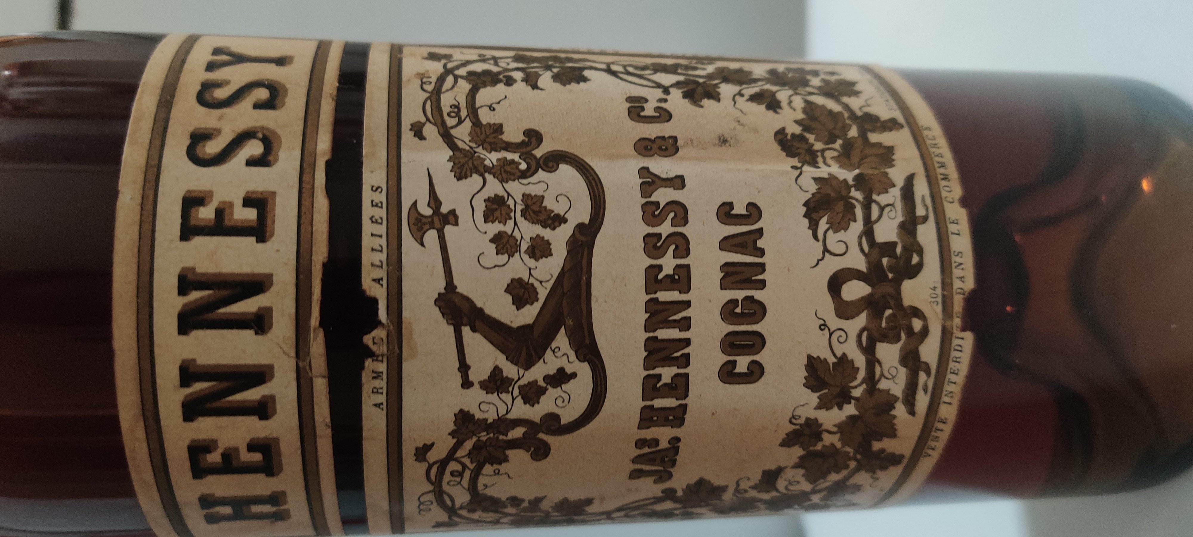 - Please don't make me write all this. lol The front is fairly blank. Aside from the blatant name, there is what appears to be French written on both the left, right, and bottom areas of the main label on the front. "Armes Allies", "Vente Interdi?? Dans Le Commerce". The dead center bottom of the main label also has "304" written at the bottom. The rear label has a descriptive paragraph of what Hennessy cognac is, etc. The upper left corner of the label has the words "trade mark", which is separated by an image of what appears to be an armored knight arm swinging in ax overhead. The upper right area of the label appears to have a stamp that says (in I assume French) "Lales Class Vi Store".