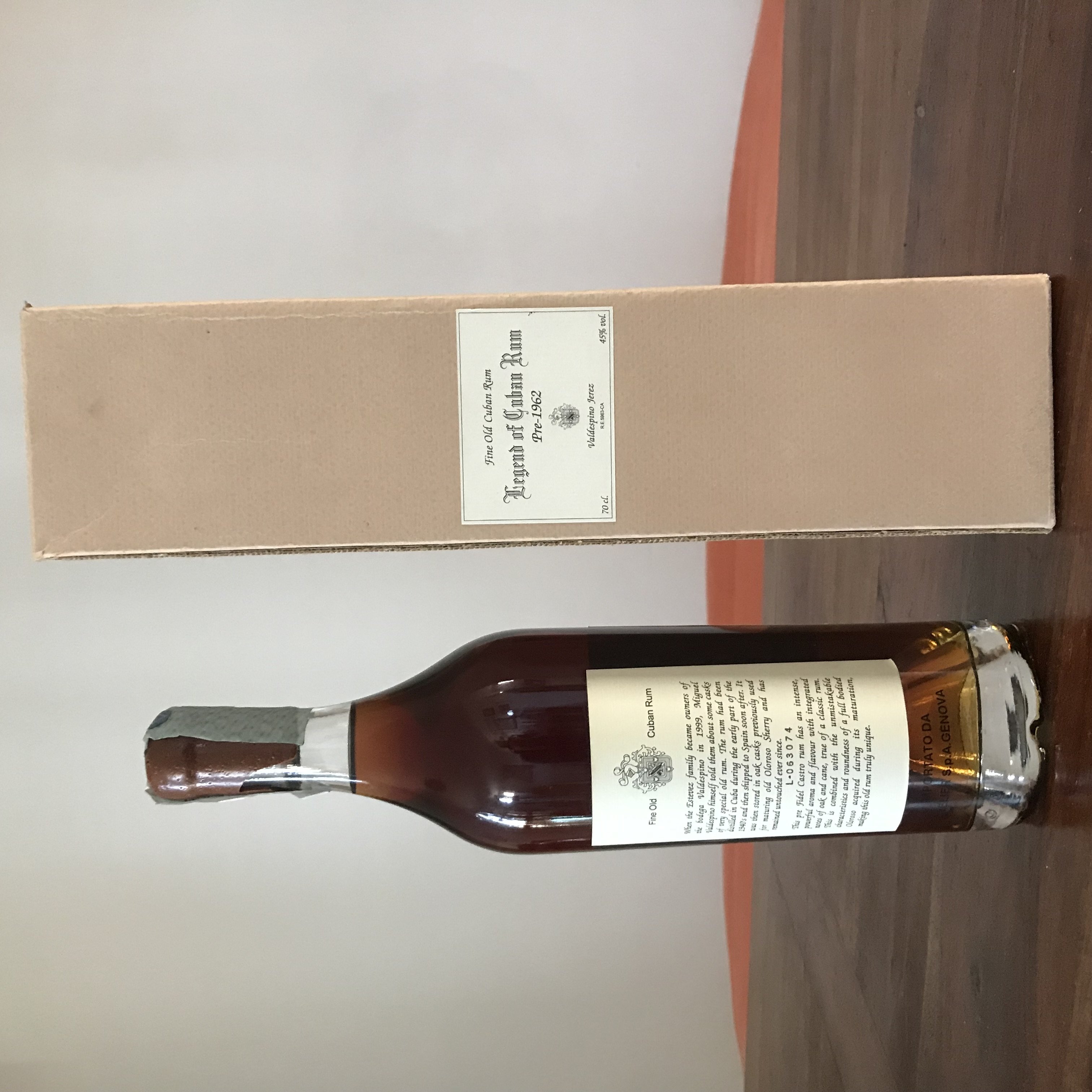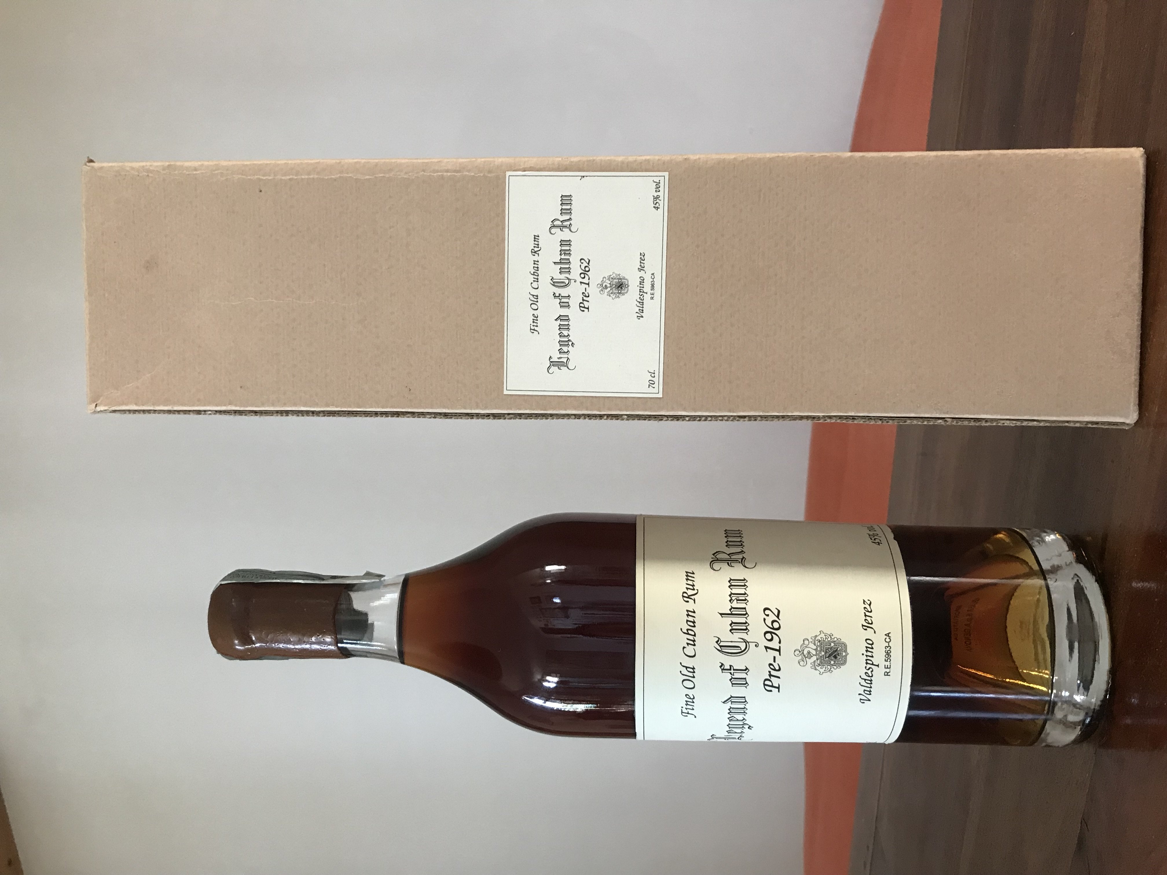 - I have a 70-cl bottle of Valdespino 'Legend of Cuban Rum' pre-1962, in perfect condition and with the original casing. I bought it at a store in Italy in 2017.