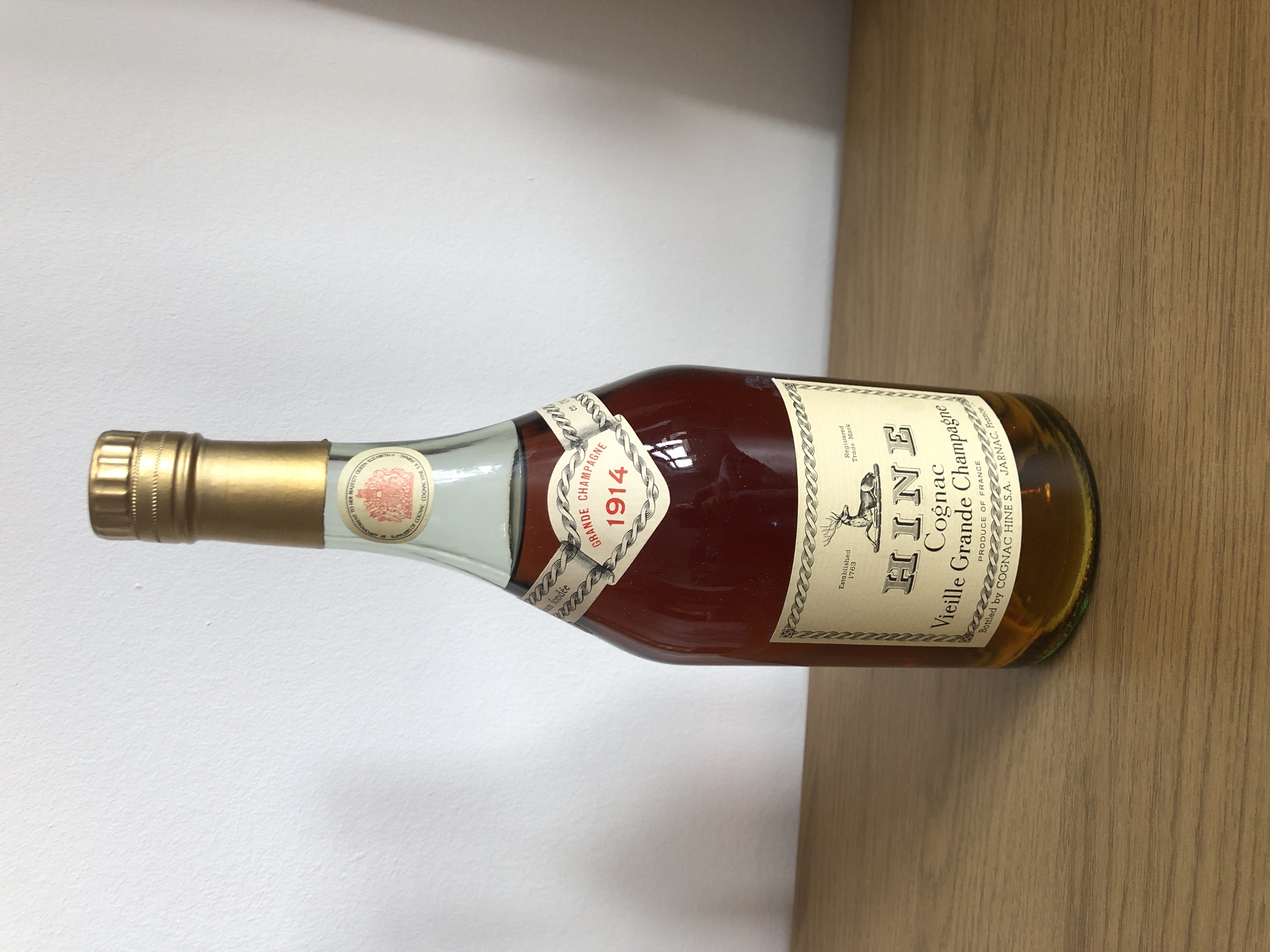 - Grande Champagne Maison fondee en 1763 HINE Cognac Vieille Grande Champagne Produce of France Bottled by COGNAC HINE S.A. JARNAC, France