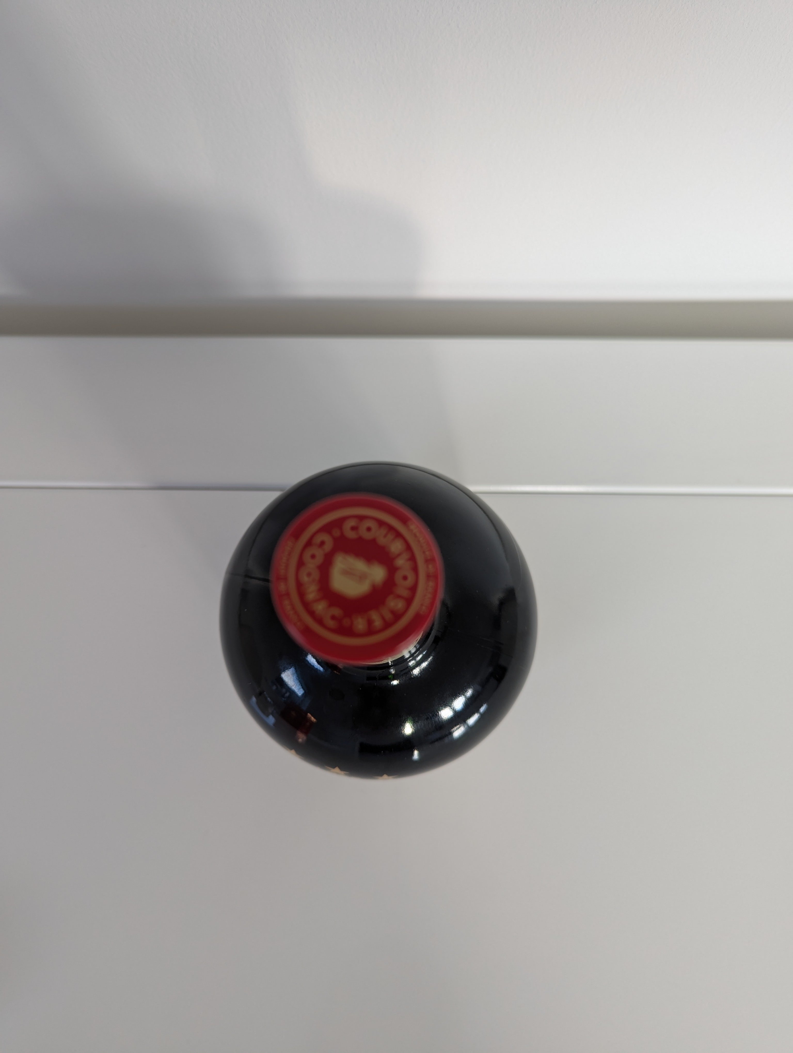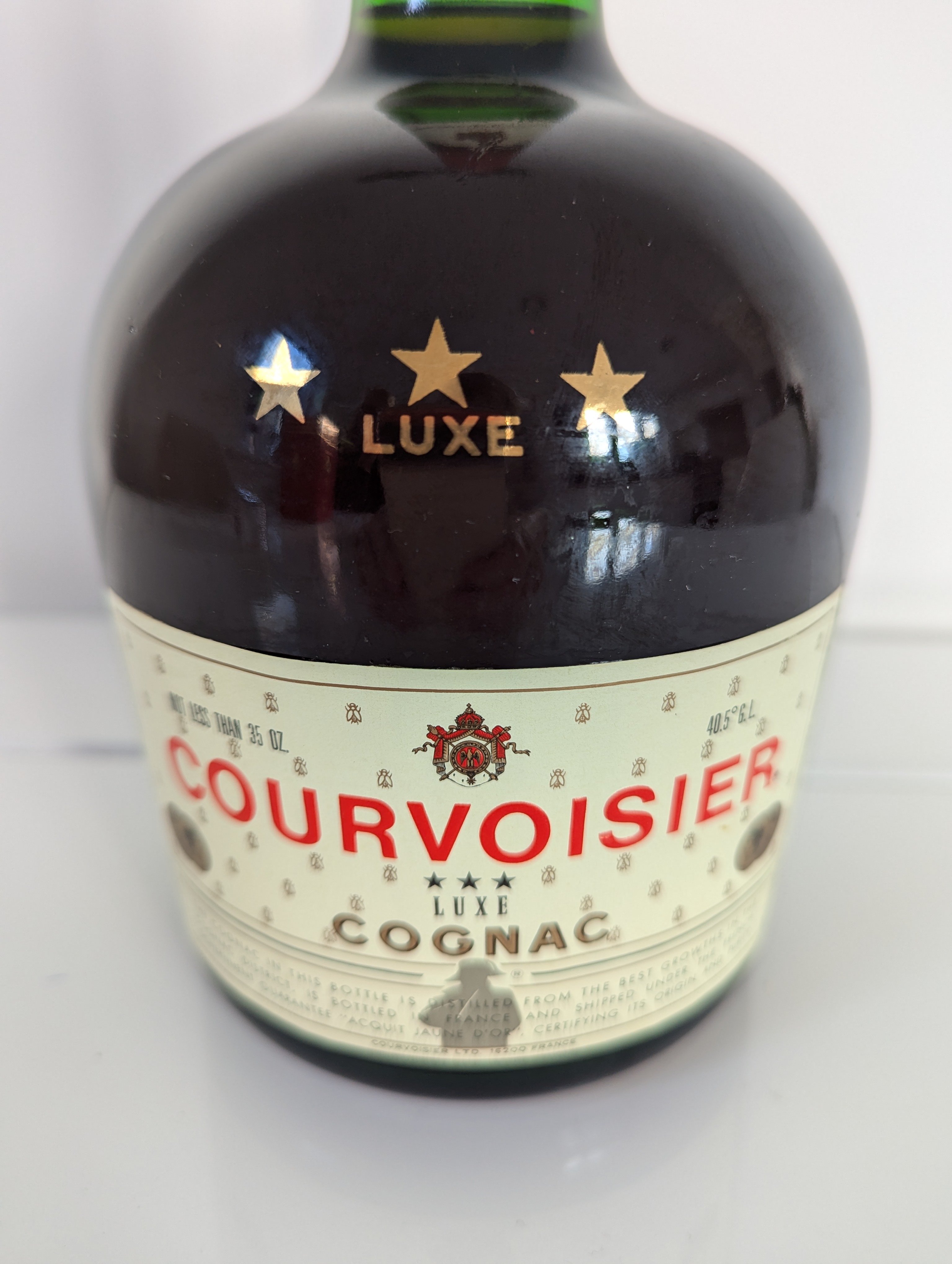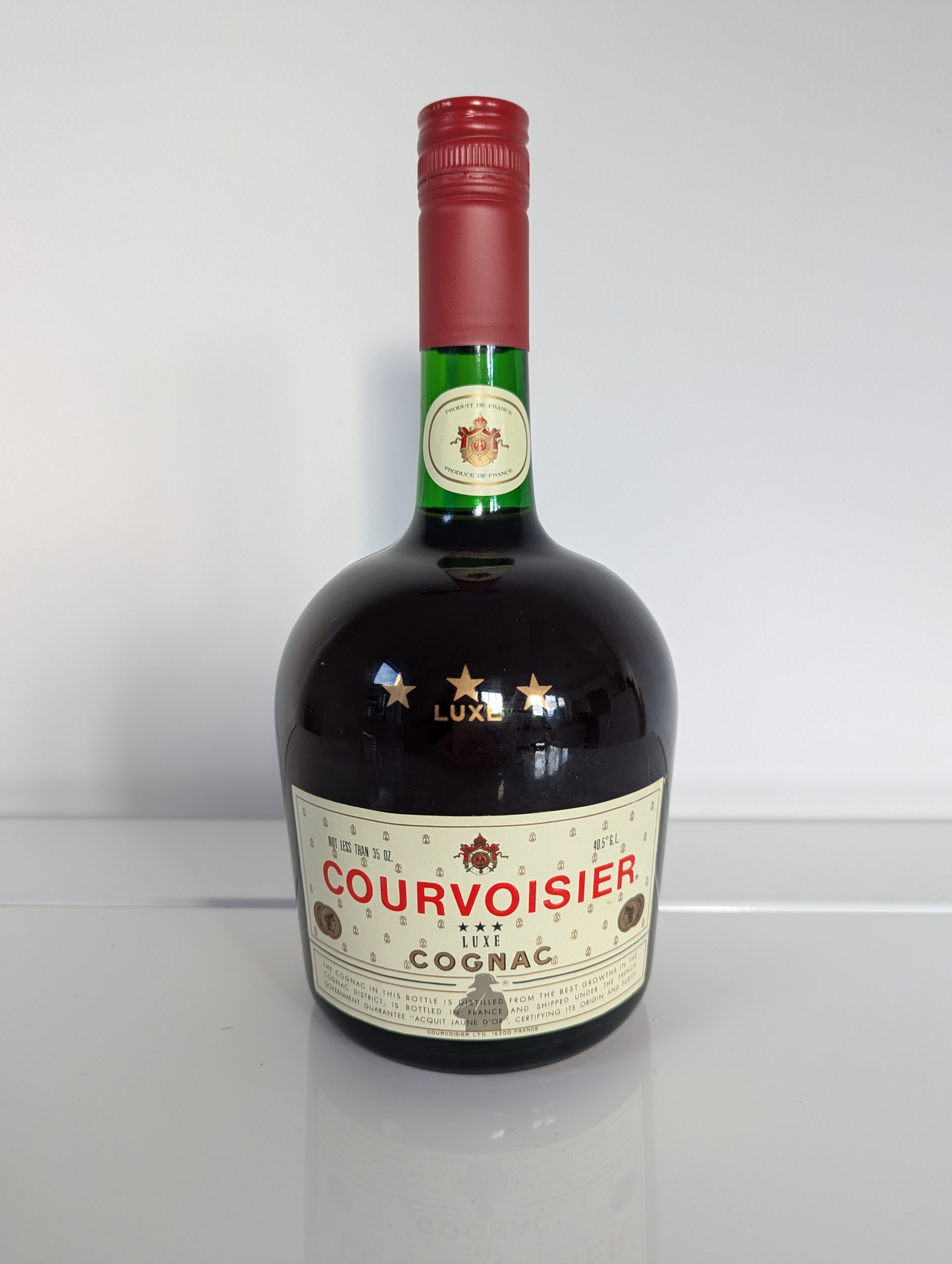 - Luxe *** Courvisier Cognac. The cognac in this bottle is distilled from the best growths in the cognac district is bottled in France and shipped under the french government guarantee "Acquit Jayne d'Or. Certifying it's origin and purity
